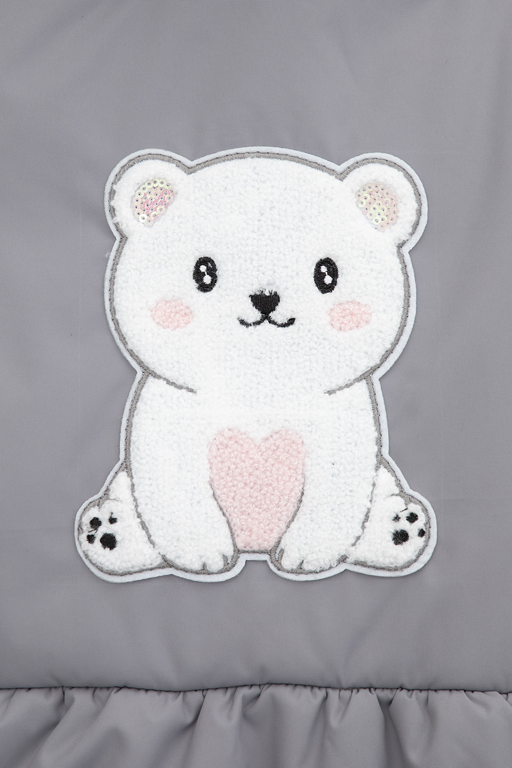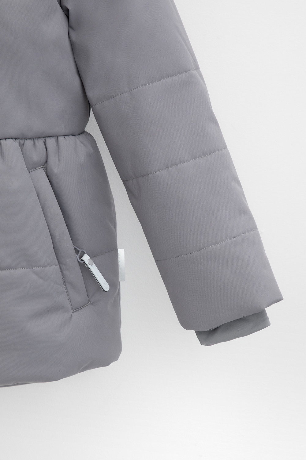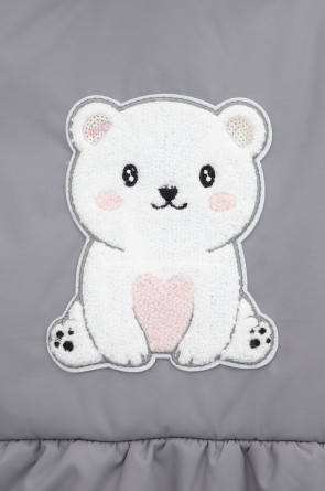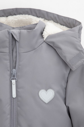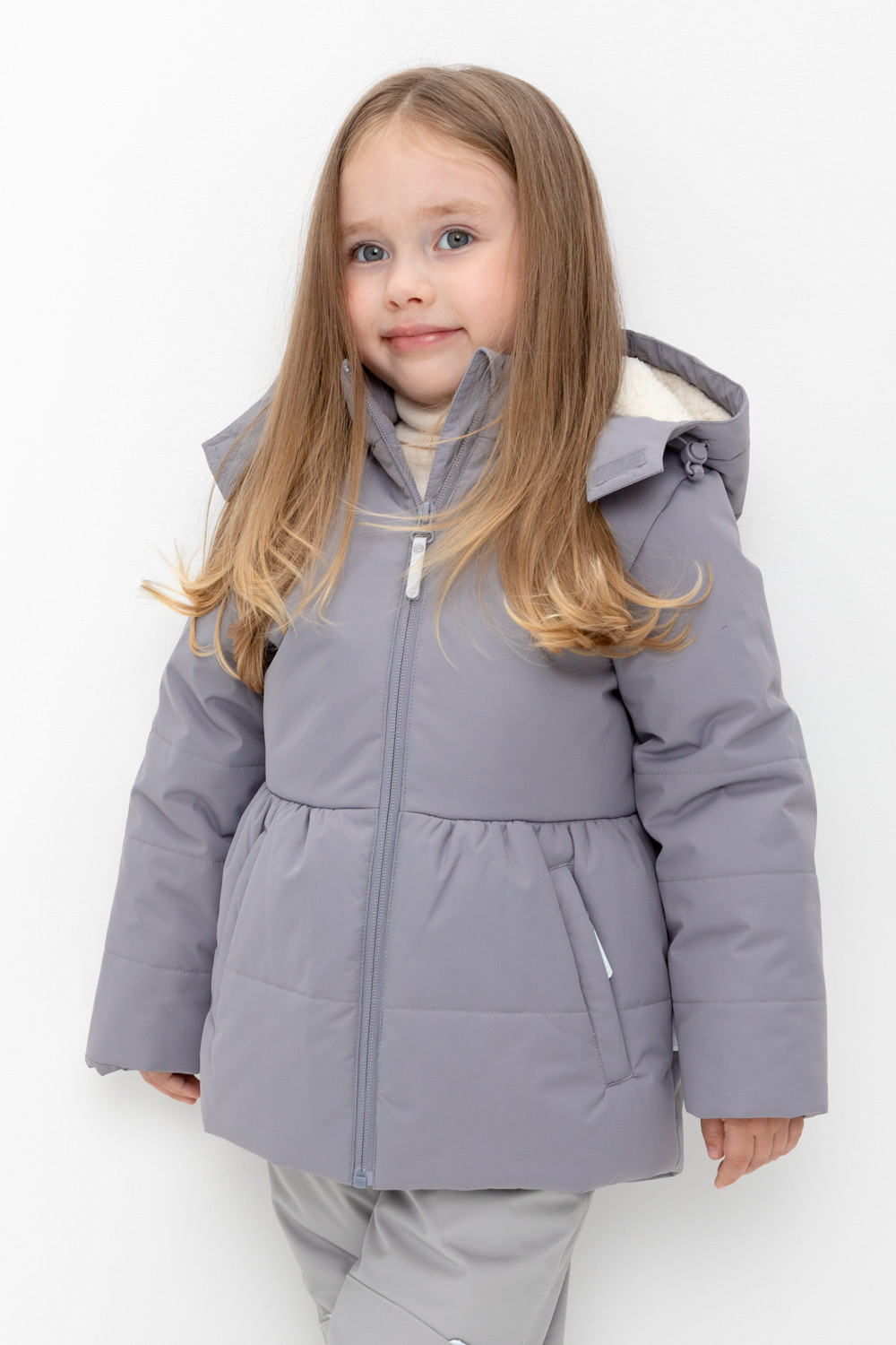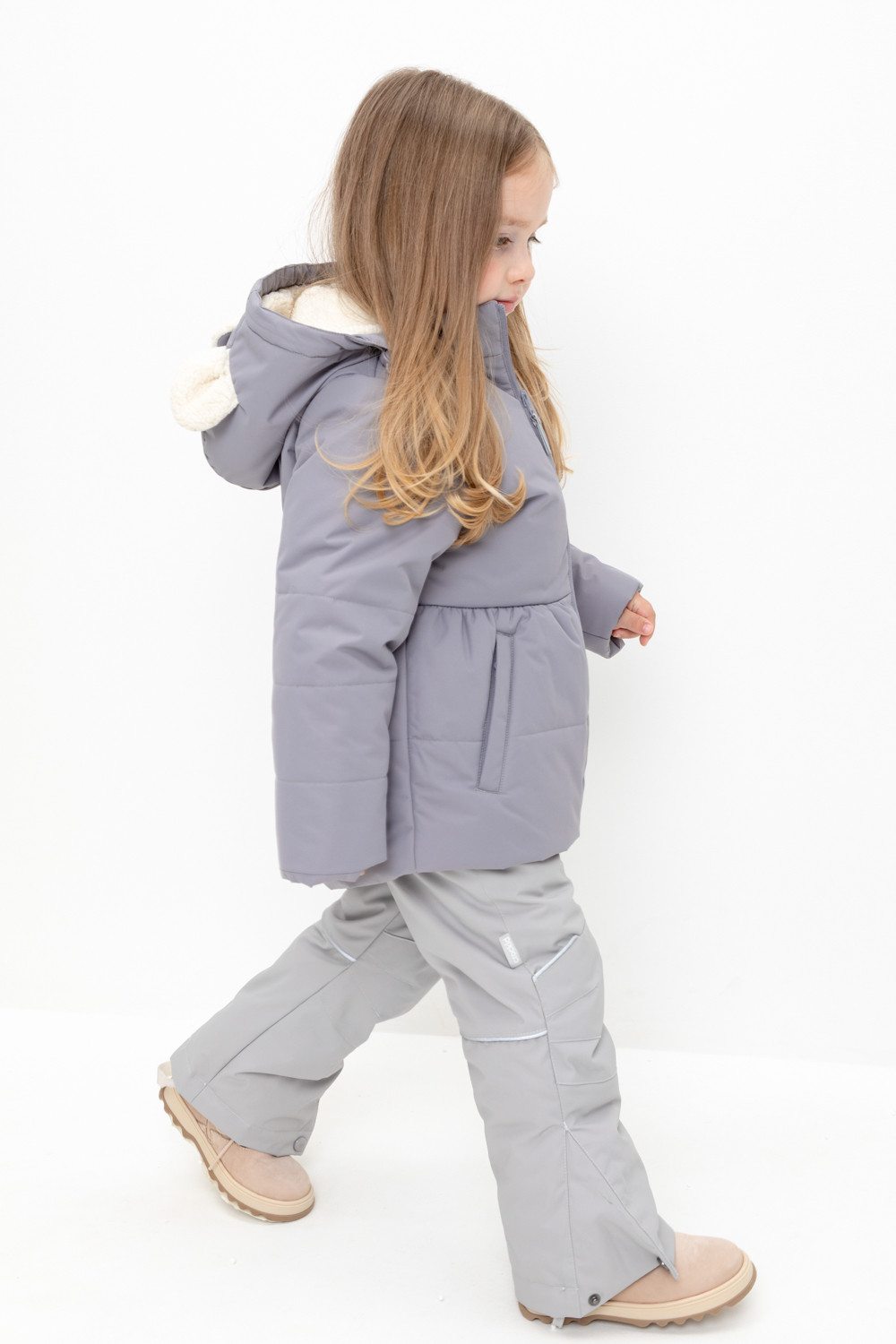 • Несъёмный капюшон с декоративными ушками и подкладом из флиса утягивается с помощью эластичной утяжки со стопперами.