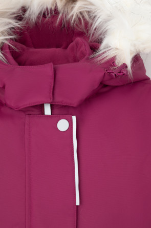 • Съемный капюшон на липучках с отстегивающимся искусственным мехом и утяжкой со стопперами по бокам капюшона.