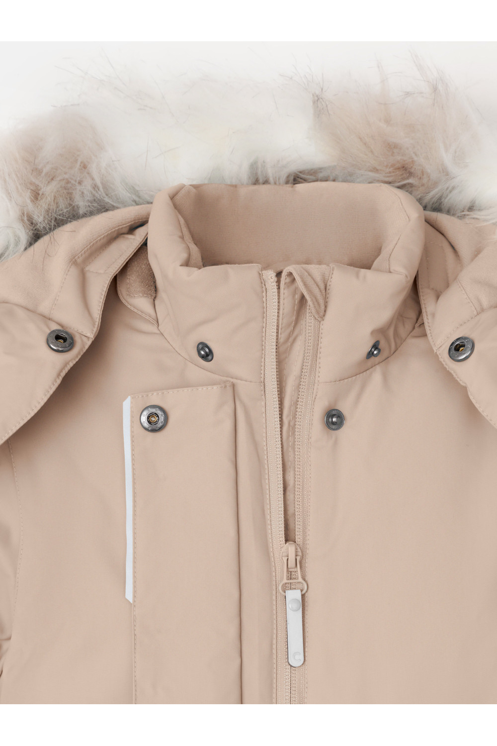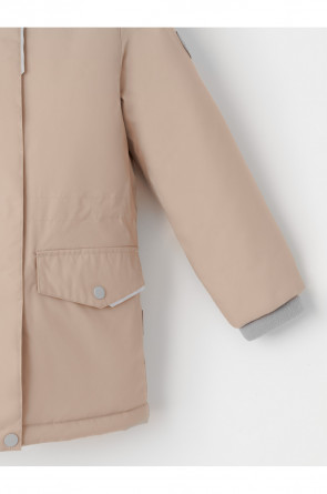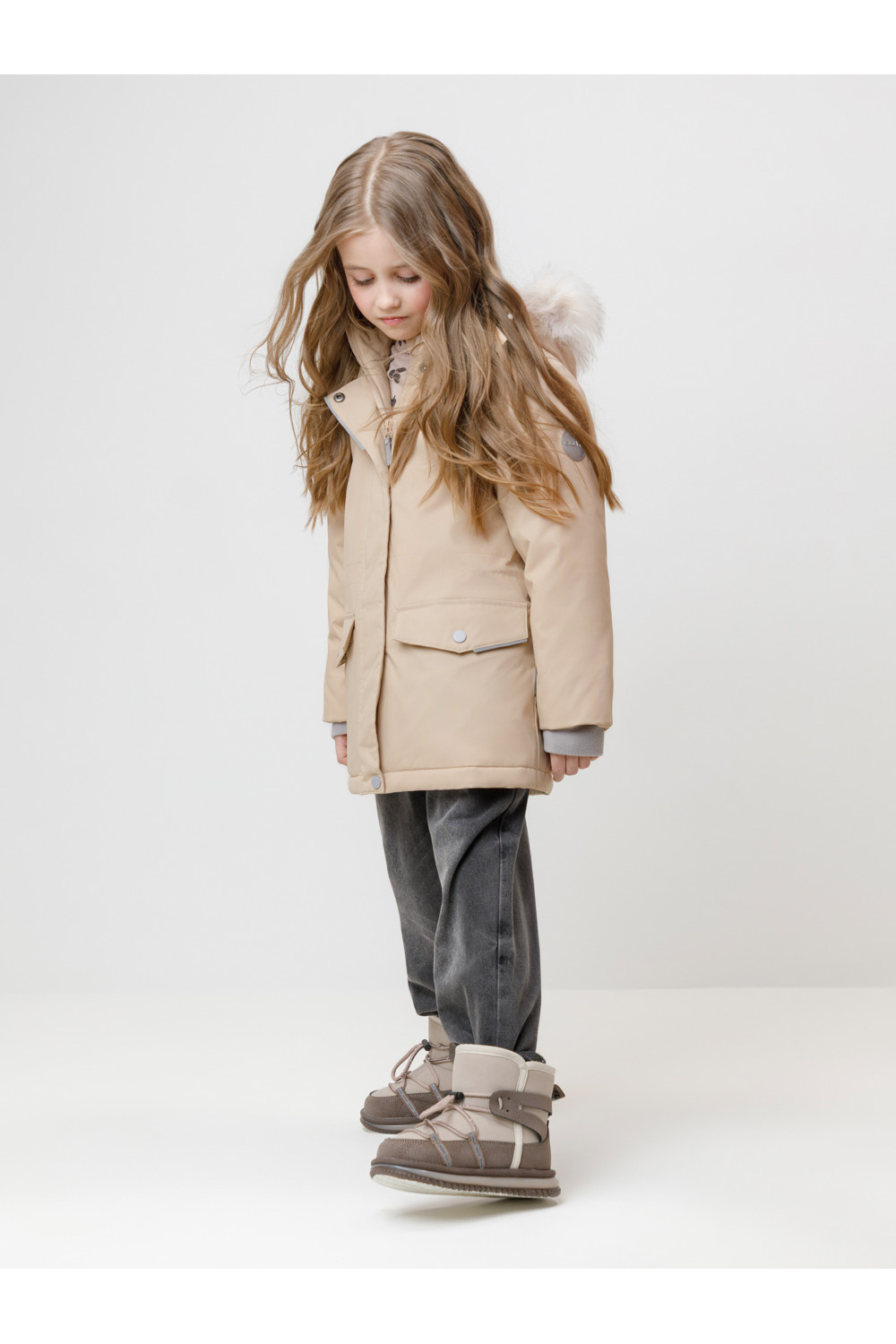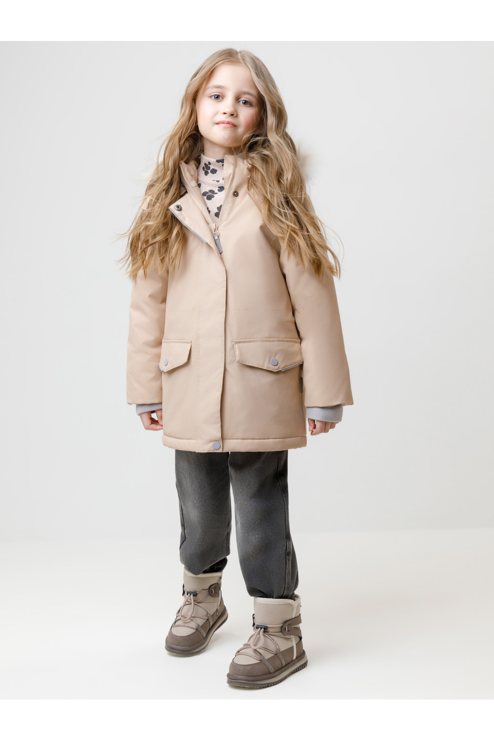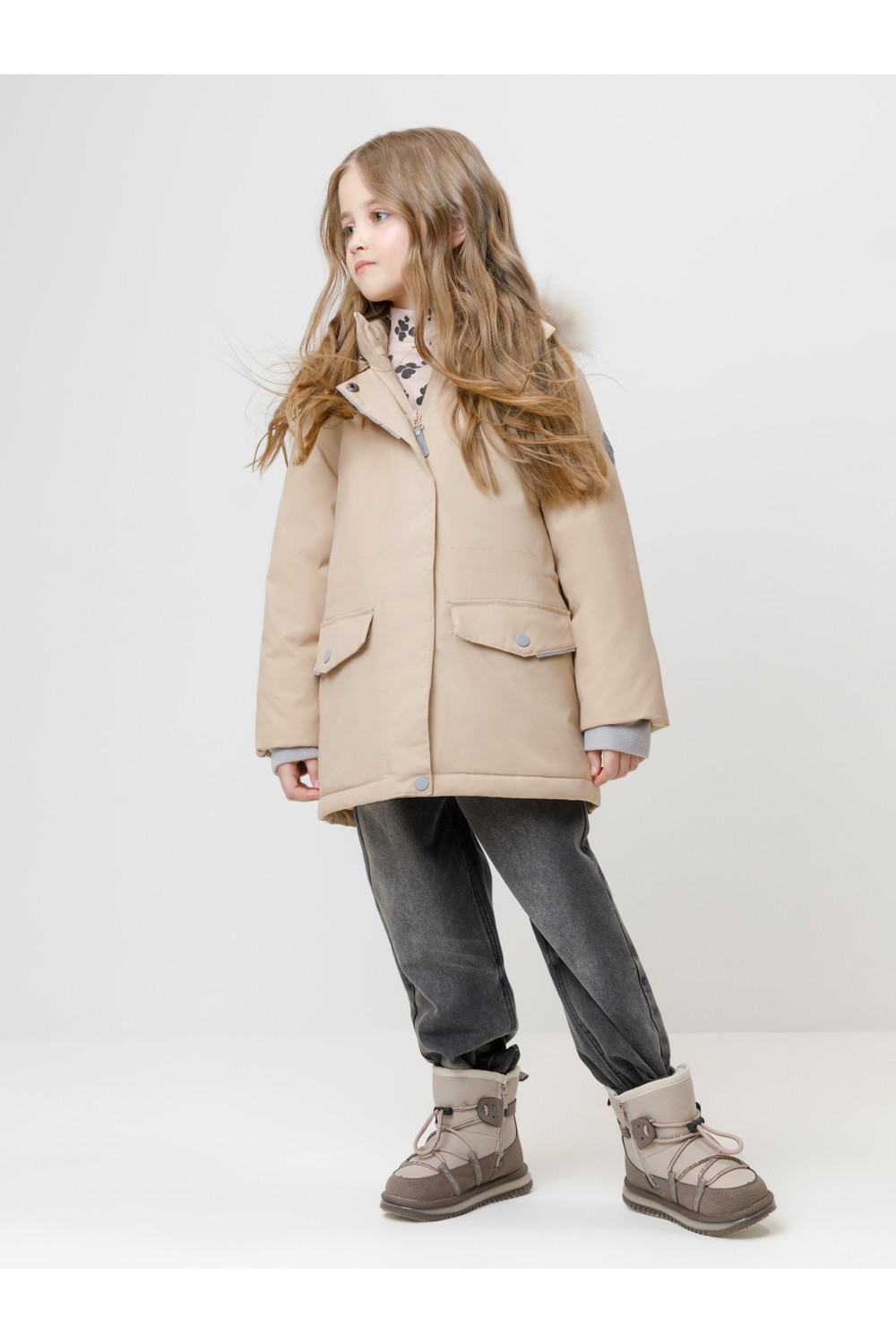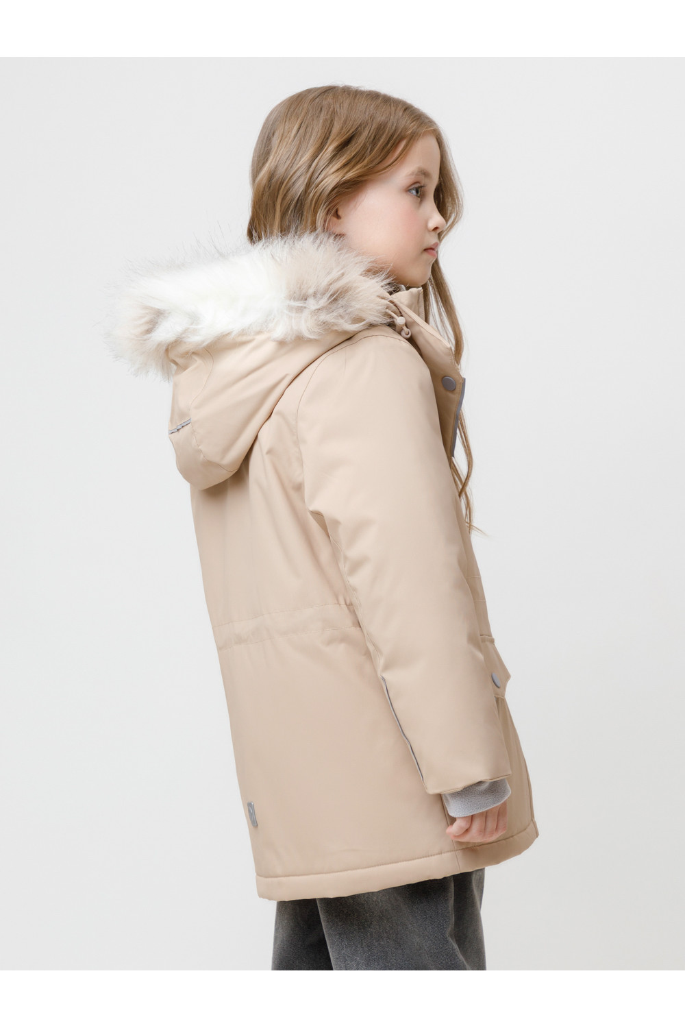 Зимняя куртка для девочки с утеплителем SEE®: 250 г/м2. Выполнена из мембранной ткани с дополнительной тефлоновой обработкой, которая предохраняет изделие от загрязнений и отталкивает влагу. Подклад выполнен из 100% полиэстера Tricot. Куртка застёгивается на молнию, предусмотрена защита подбородка. Съёмный капюшон на кнопках и липучках имеет отстёгивающийся искусственный мех на молнии и эластичную утяжку со стопперами. На рукавах мягкие внутренние манжеты. По бокам два кармана с клапанами на кнопках. Изнутри кулиска по талии для регулировки ширины куртки. Во всех изделиях верхнего ассортимента для безопасности ребёнка предусмотрены светоотражающие элементы.