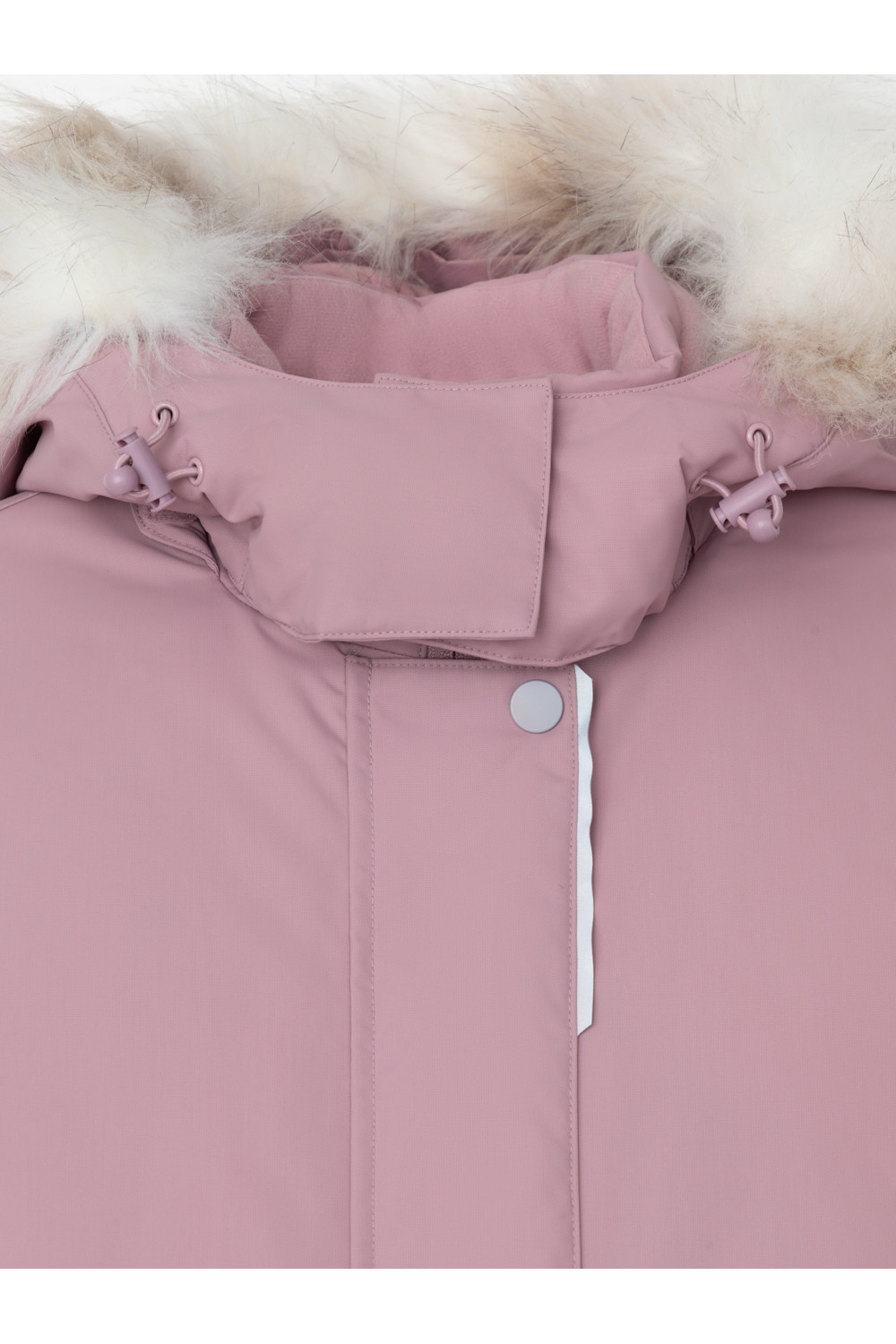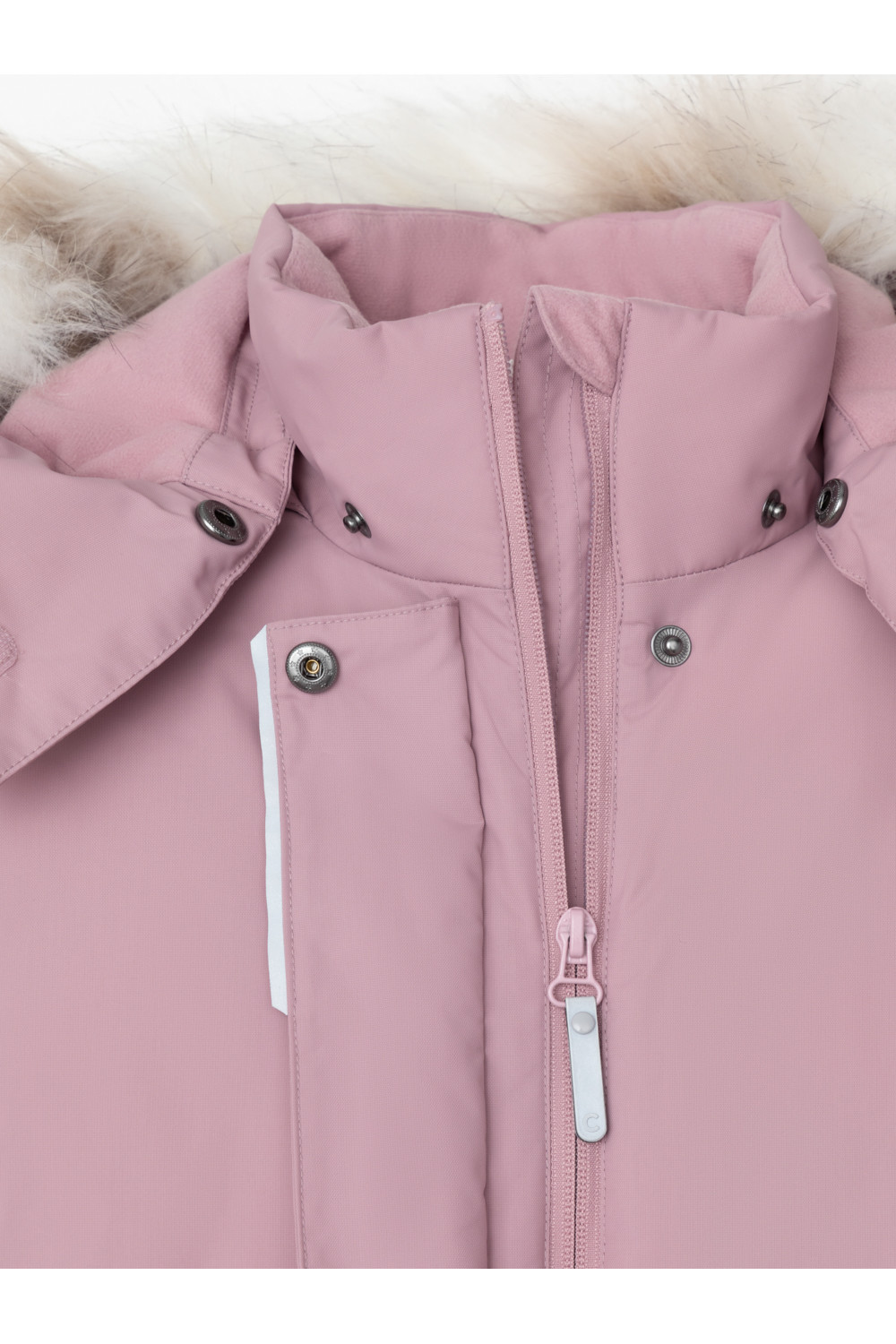 Зимняя куртка для девочки с утеплителем SEE®: 250 г/м2. Выполнена из мембранной ткани с дополнительной тефлоновой обработкой, которая предохраняет изделие от загрязнений и отталкивает влагу. Подклад выполнен из 100% полиэстера Tricot. Куртка застёгивается на молнию, предусмотрена защита подбородка. Съёмный капюшон на кнопках и липучках имеет отстёгивающийся искусственный мех на молнии и эластичную утяжку со стопперами. На рукавах мягкие внутренние манжеты. По бокам два кармана с клапанами на кнопках. Изнутри кулиска по талии для регулировки ширины куртки. Во всех изделиях верхнего ассортимента для безопасности ребёнка предусмотрены светоотражающие элементы.