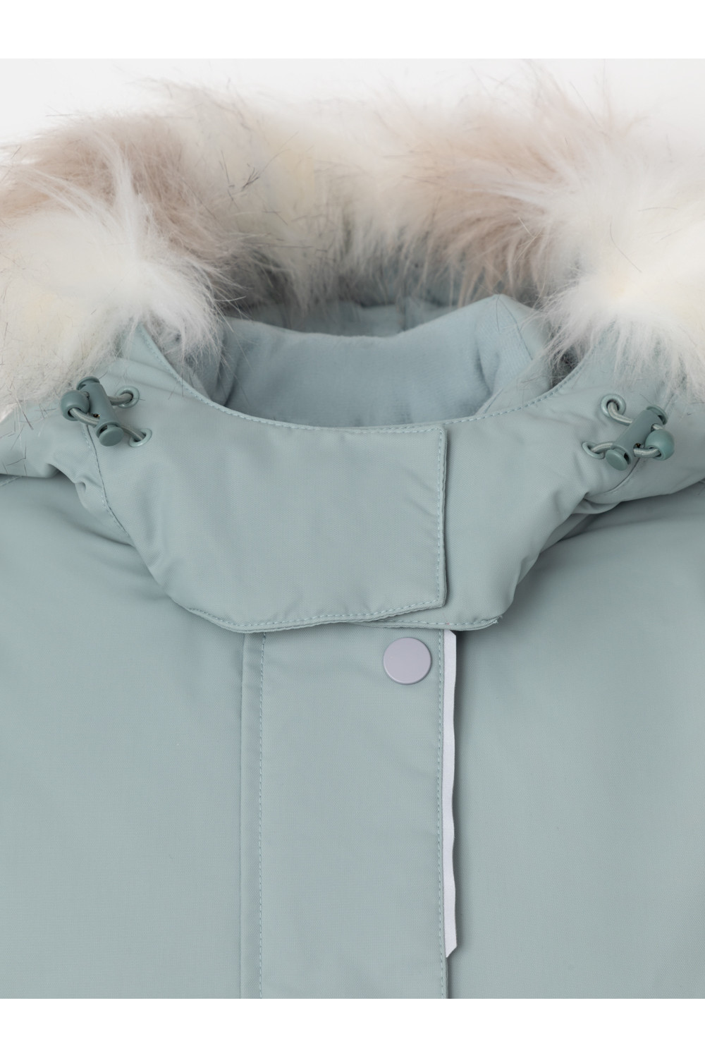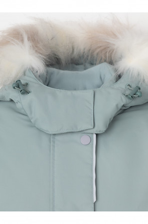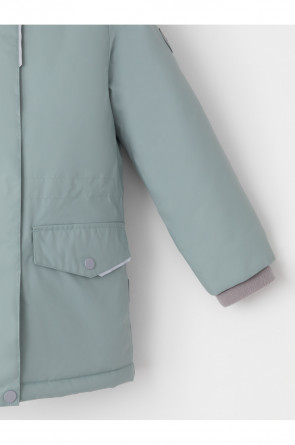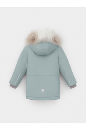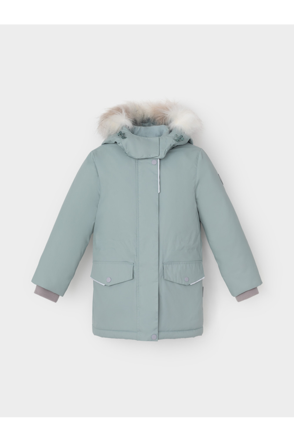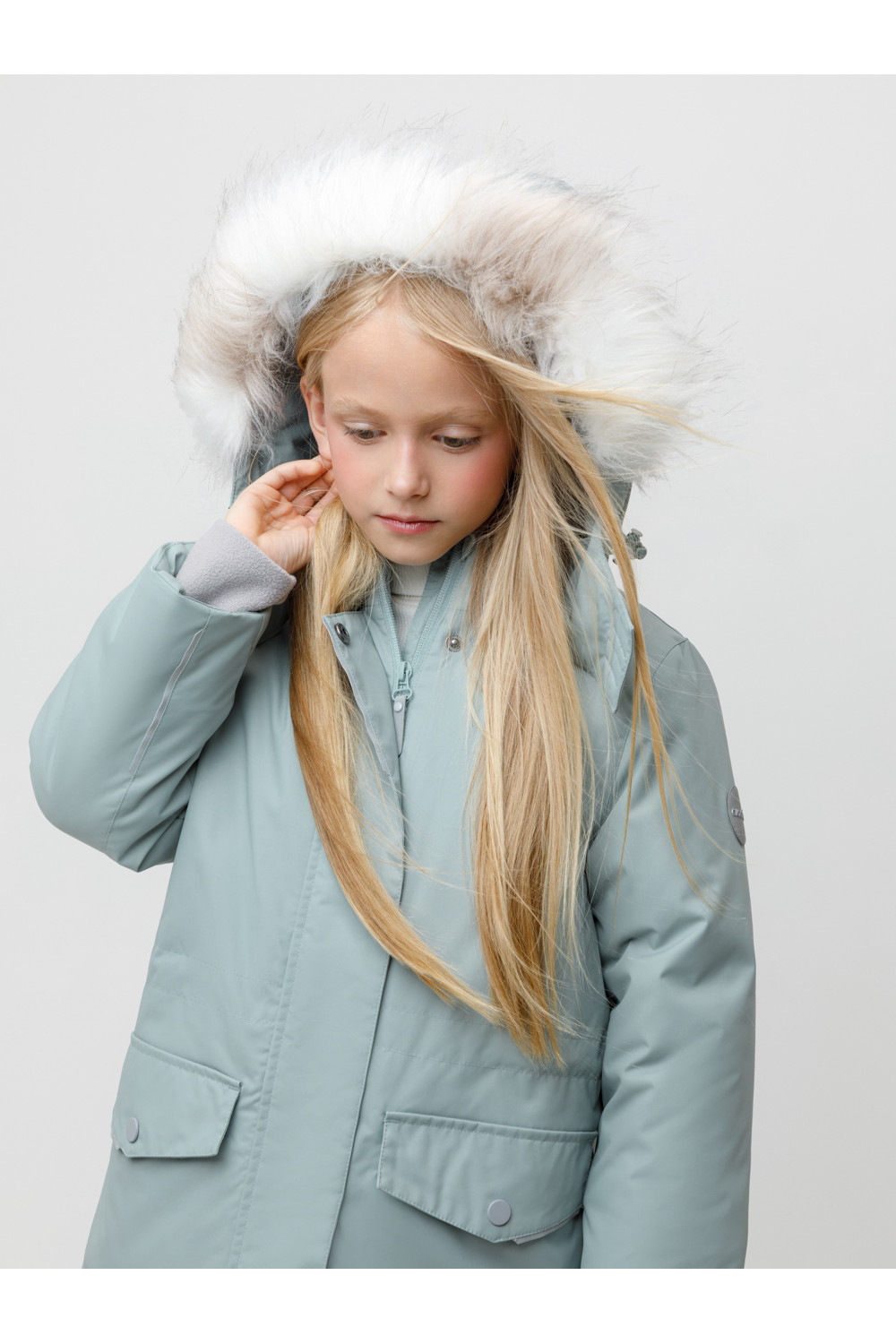 Зимняя куртка для девочки с утеплителем SEE®: 250 г/м2. Выполнена из мембранной ткани с дополнительной тефлоновой обработкой, которая предохраняет изделие от загрязнений и отталкивает влагу. Подклад выполнен из 100% полиэстера Tricot. Куртка застёгивается на молнию, предусмотрена защита подбородка. Съёмный капюшон на кнопках и липучках имеет отстёгивающийся искусственный мех на молнии и эластичную утяжку со стопперами. На рукавах мягкие внутренние манжеты. По бокам два кармана с клапанами на кнопках. Изнутри кулиска по талии для регулировки ширины куртки. Во всех изделиях верхнего ассортимента для безопасности ребёнка предусмотрены светоотражающие элементы.