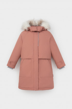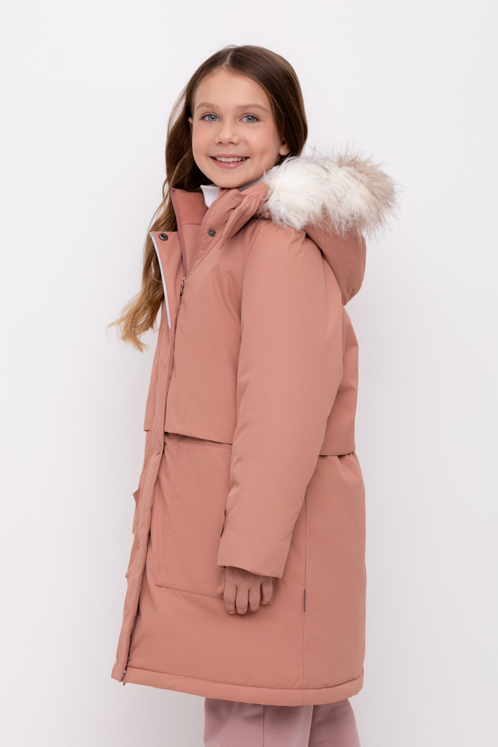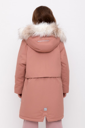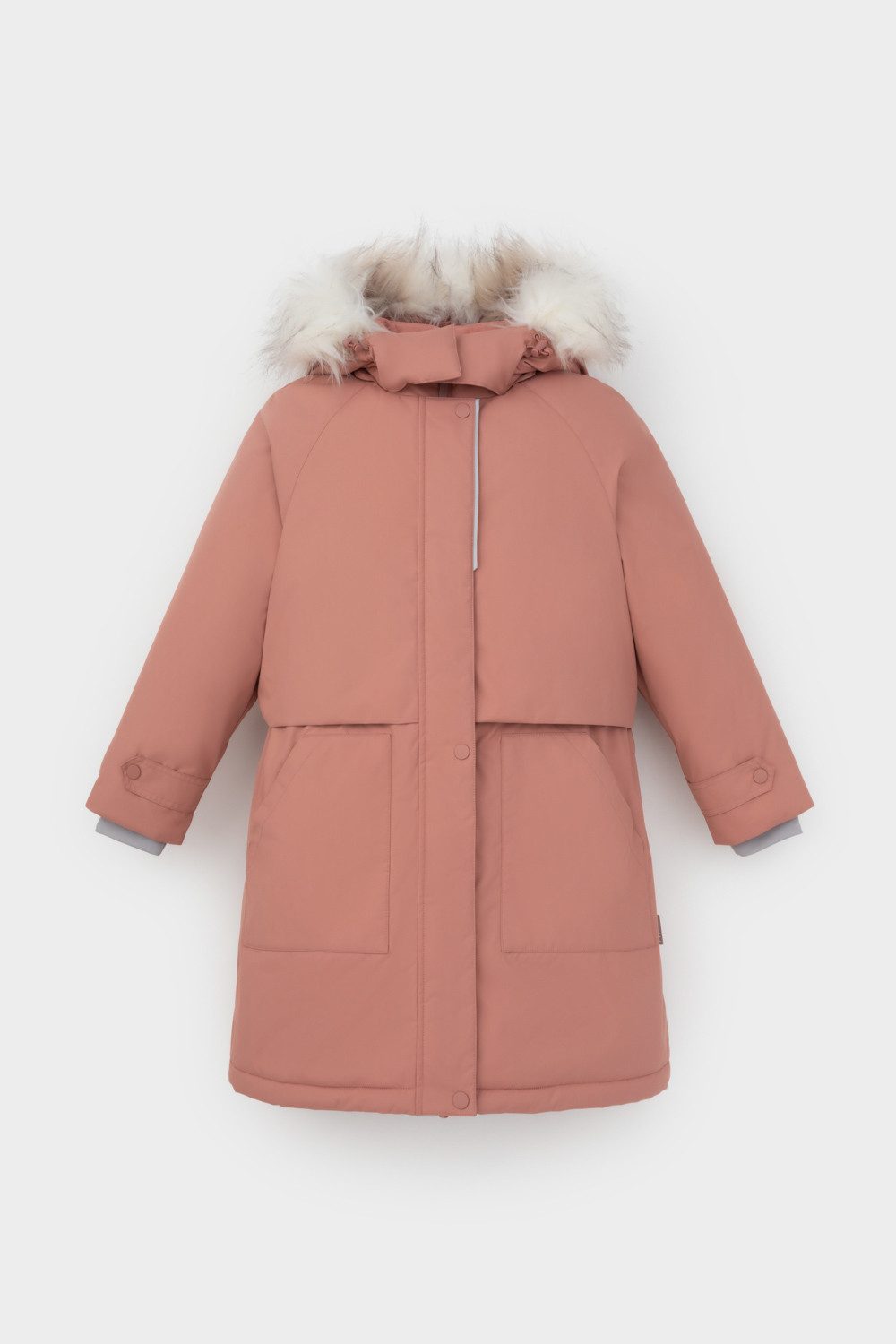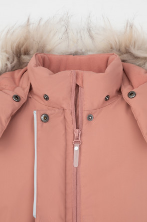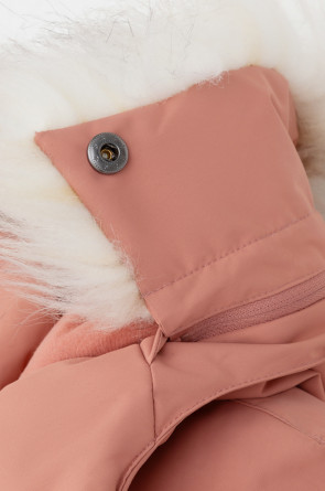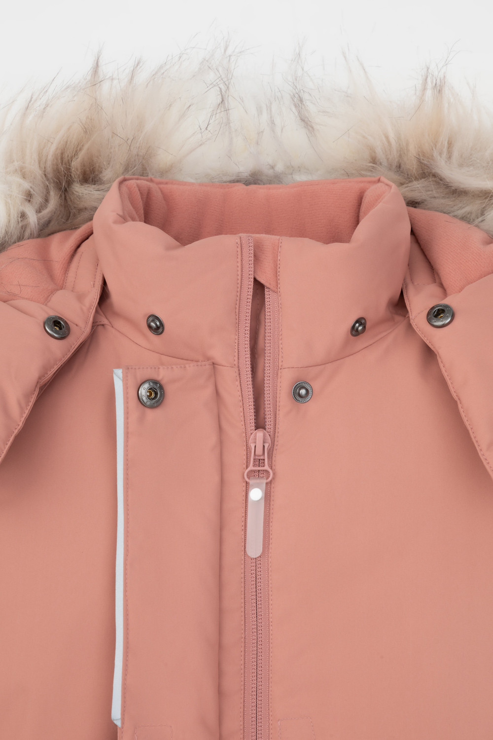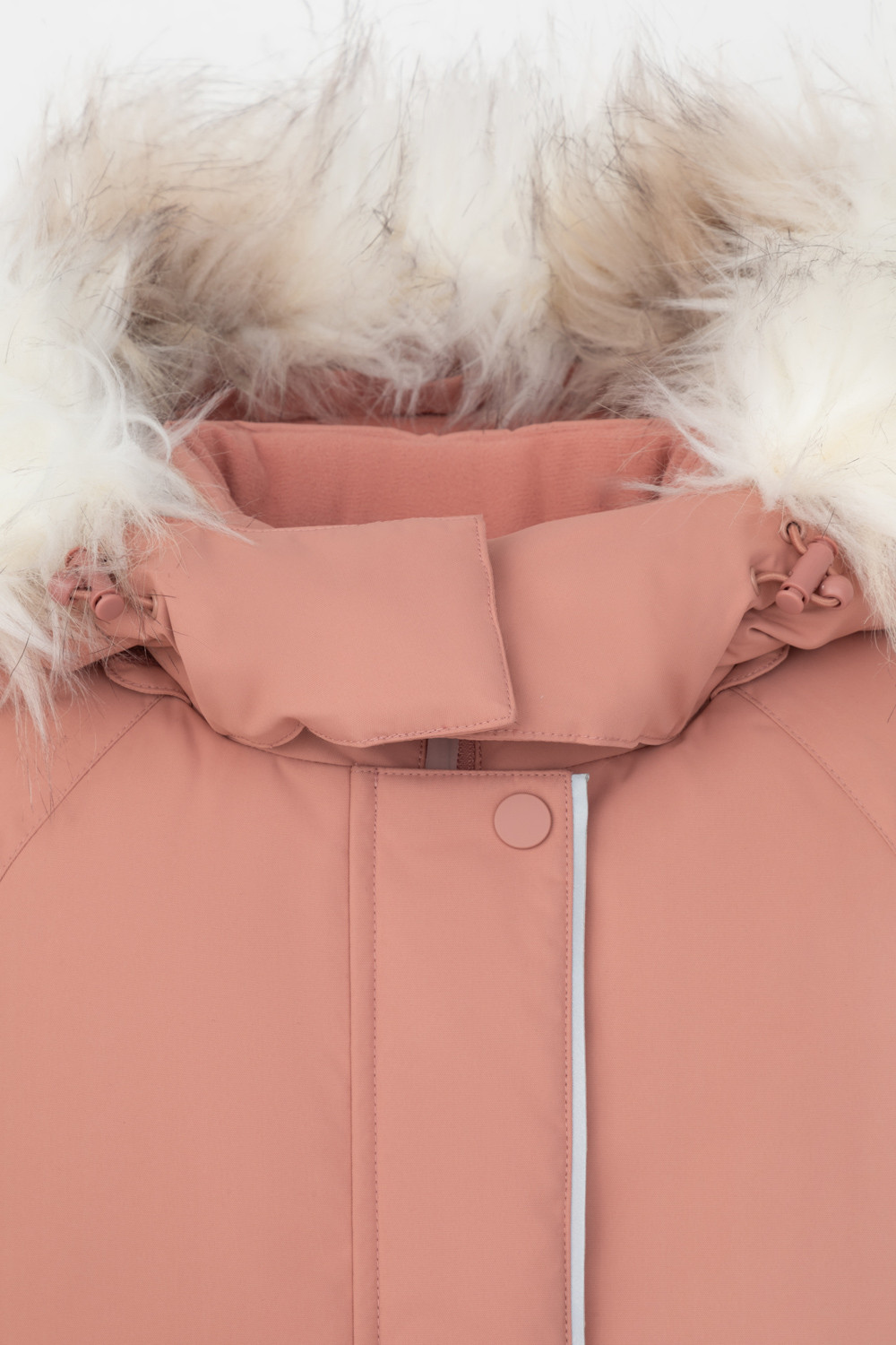 • Съемный капюшон на липучках с отстегивающимся искусственным мехом и утяжкой со стопперами по бокам капюшона.