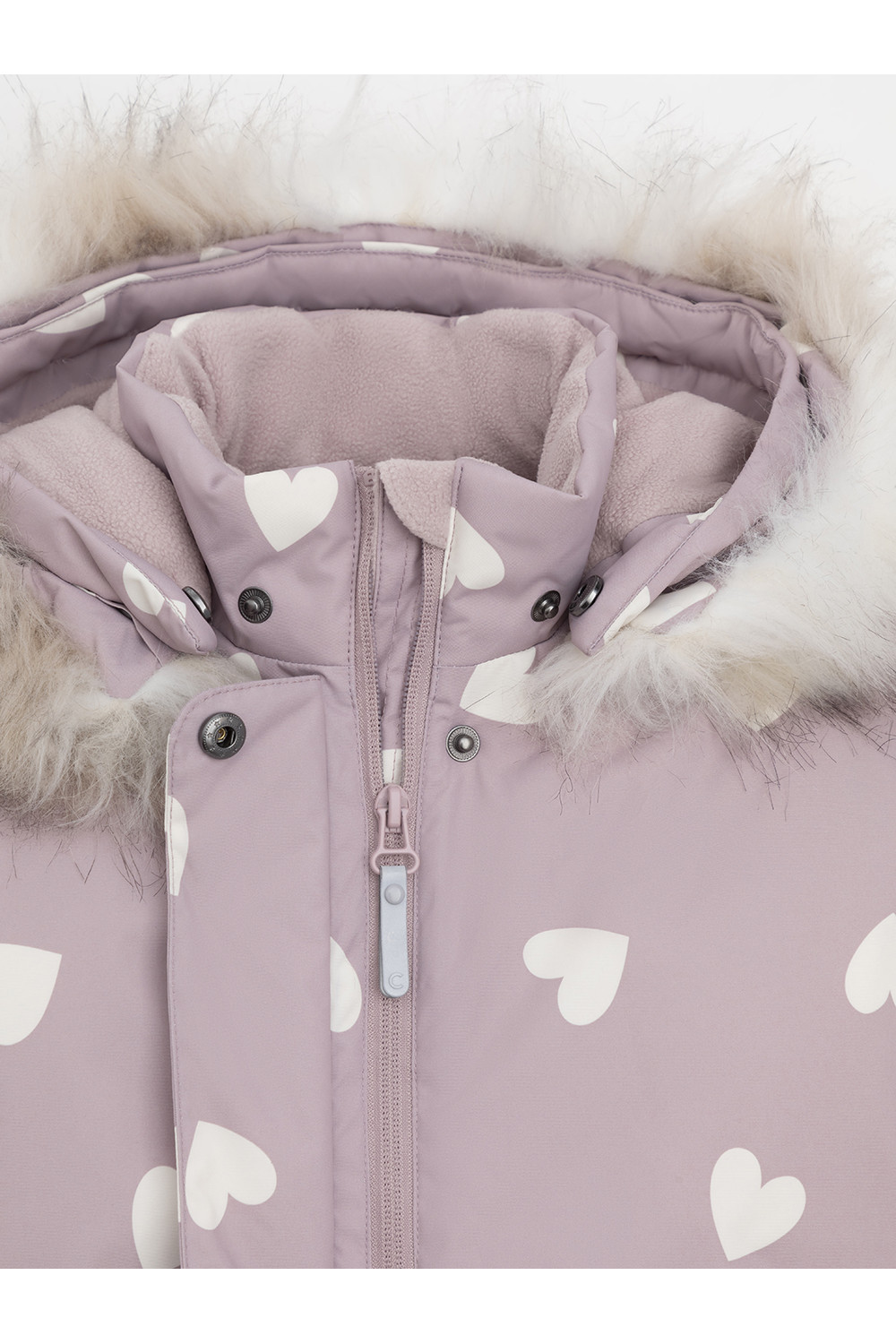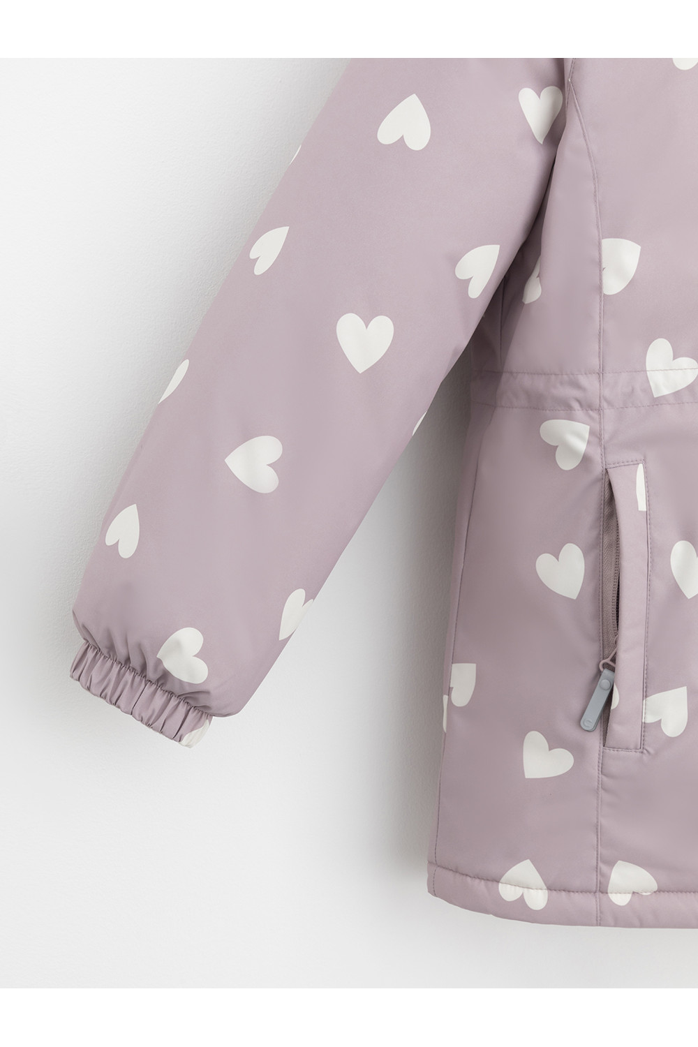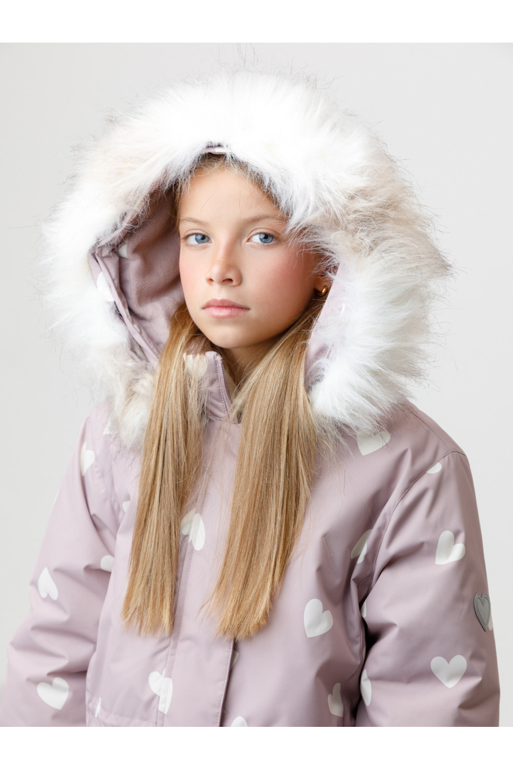 Зимняя куртка для девочки с утеплителем SEE®: 300 г/м2. Выполнена из мембранной ткани с дополнительной тефлоновой обработкой, которая предохраняет изделие от загрязнений и отталкивает влагу. Подклад выполнен из 100% полиэстера Tricot. Куртка застёгивается на молнию, предусмотрена защита подбородка. Съёмный капюшон на кнопках и липучках имеет отстёгивающийся искусственный мех. На рукавах эластичные манжеты на резинке. По бокам два кармана на молниях. По талии эластичная утяжка со стопперами для регулировки ширины куртки. Во всех изделиях верхнего ассортимента для безопасности ребёнка предусмотрены светоотражающие элементы.