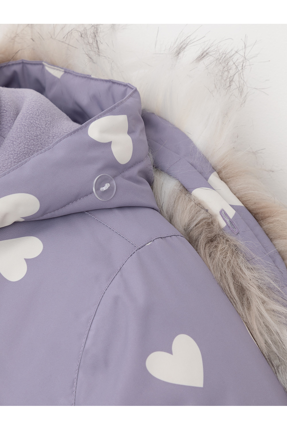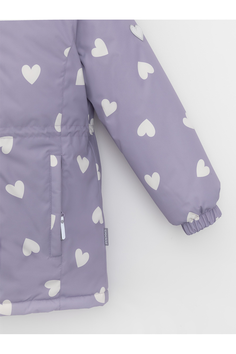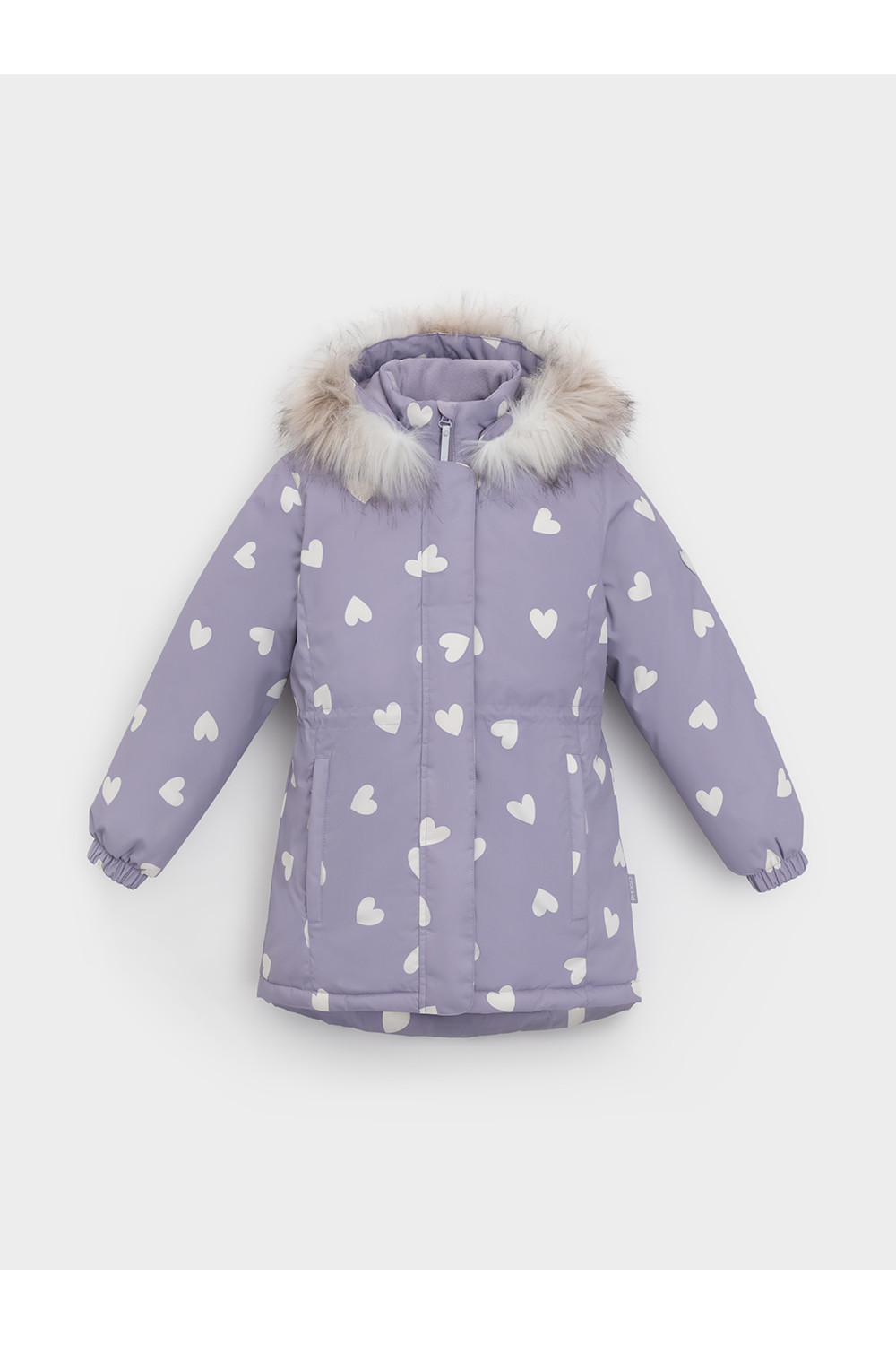 Зимняя куртка для девочки с утеплителем SEE®: 300 г/м2. Выполнена из мембранной ткани с дополнительной тефлоновой обработкой, которая предохраняет изделие от загрязнений и отталкивает влагу. Подклад выполнен из 100% полиэстера Tricot. Куртка застёгивается на молнию, предусмотрена защита подбородка. Съёмный капюшон на кнопках и липучках имеет отстёгивающийся искусственный мех. На рукавах эластичные манжеты на резинке. По бокам два кармана на молниях. По талии эластичная утяжка со стопперами для регулировки ширины куртки. Во всех изделиях верхнего ассортимента для безопасности ребёнка предусмотрены светоотражающие элементы.
