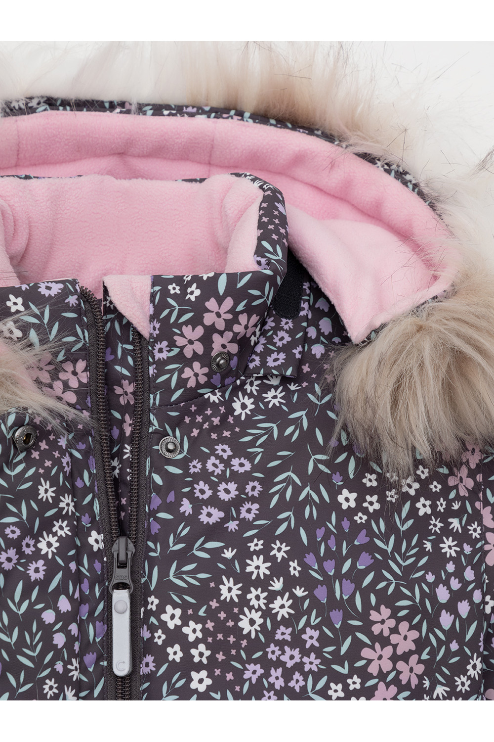 Зимняя куртка для девочки с утеплителем SEE®: 300 г/м2. Выполнена из мембранной ткани с дополнительной тефлоновой обработкой, которая предохраняет изделие от загрязнений и отталкивает влагу. Подклад выполнен из 100% полиэстера Tricot. Куртка застёгивается на молнию, предусмотрена защита подбородка. Съёмный капюшон на кнопках и липучках имеет отстёгивающийся искусственный мех. На рукавах эластичные манжеты на резинке. По бокам два кармана на молниях. По талии эластичная утяжка со стопперами для регулировки ширины куртки. Во всех изделиях верхнего ассортимента для безопасности ребёнка предусмотрены светоотражающие элементы.