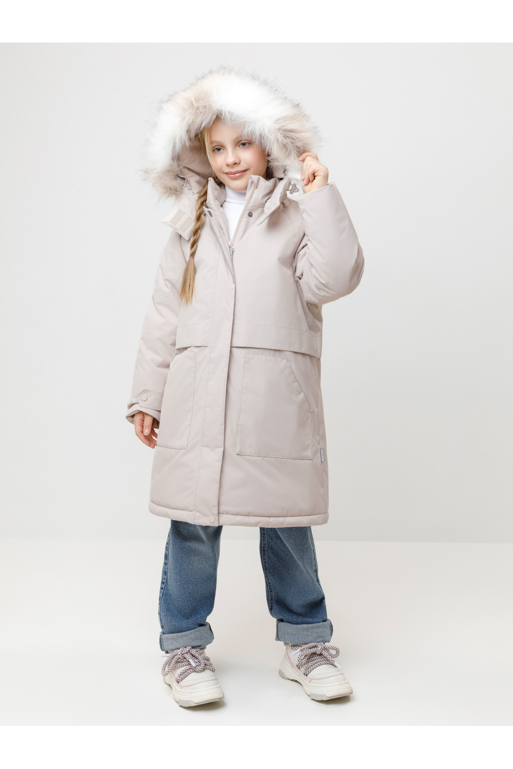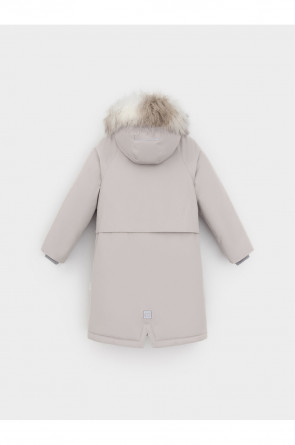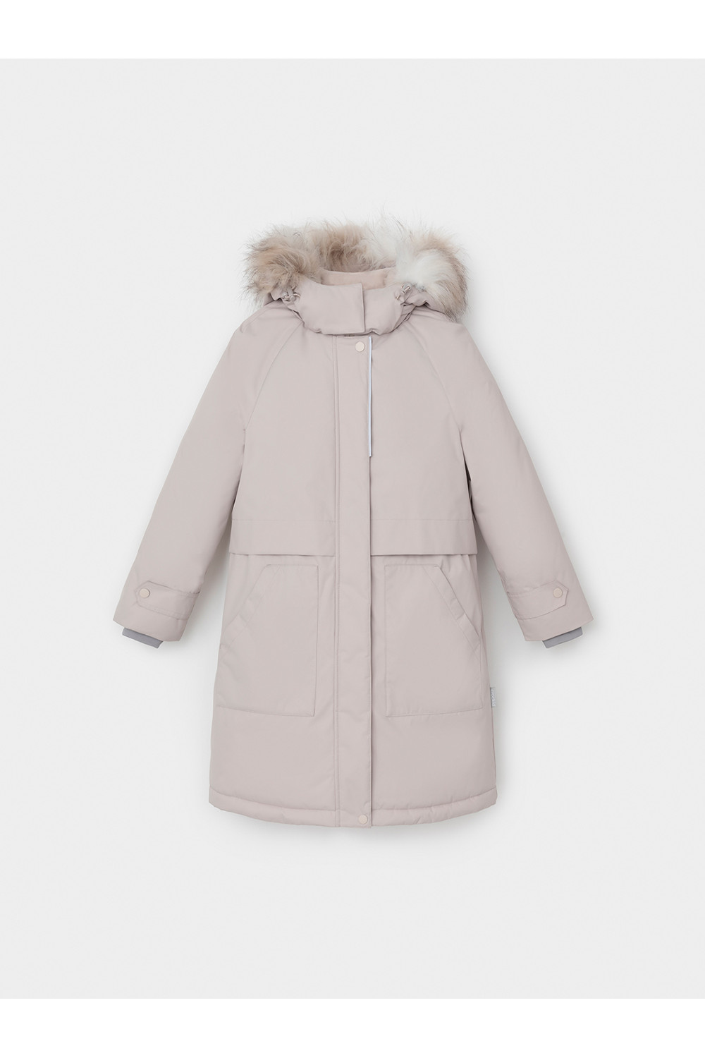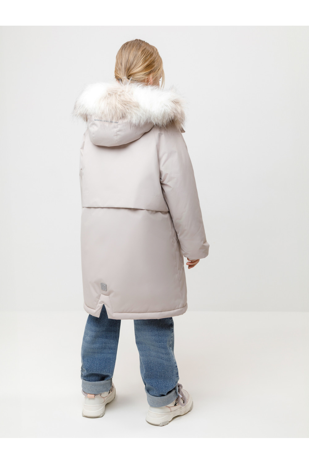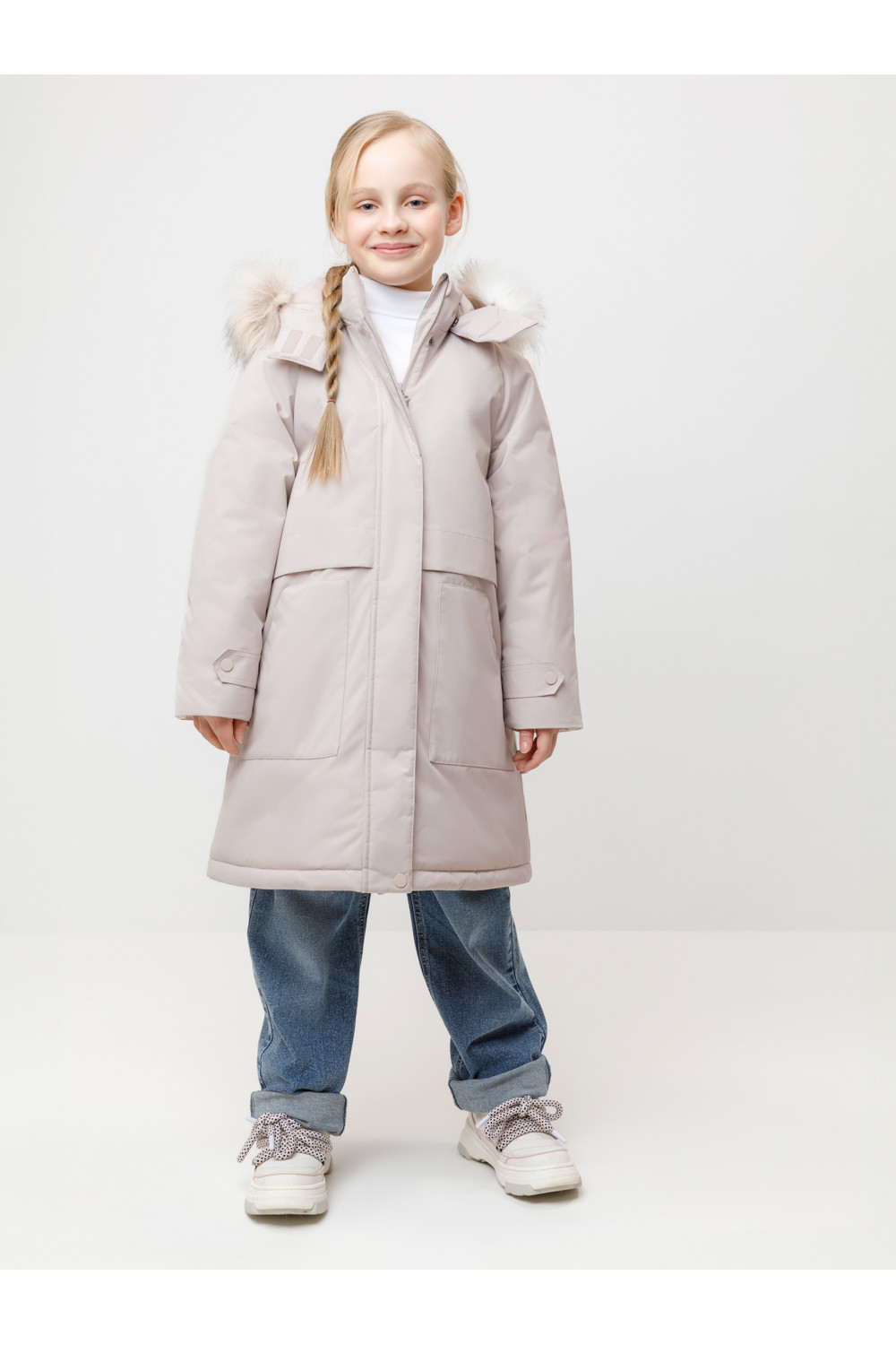 Зимняя удлинённая куртка для девочки с утеплителем SEE®: 250 г/м2. Выполнена из мембранной ткани с дополнительной тефлоновой обработкой, которая предохраняет изделие от загрязнений и отталкивает влагу. Подклад выполнен из 100% полиэстера Tricot. Куртка застёгивается на молнию, предусмотрена защита подбородка. Съёмный капюшон на кнопках и липучках имеет отстёгивающийся искусственный мех. На рукавах мягкие манжеты. По бокам два кармана с клапанами, внутри карман на молнии. По талии эластичная утяжка со стопперами для регулировки ширины пальто. Во всех изделиях верхнего ассортимента для безопасности ребёнка предусмотрены светоотражающие элементы.