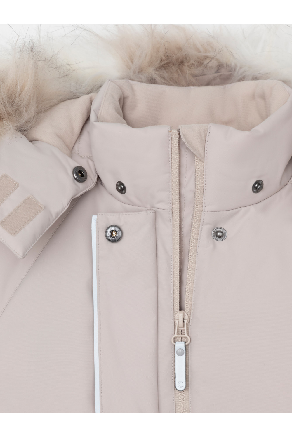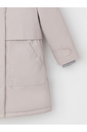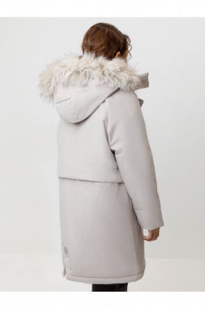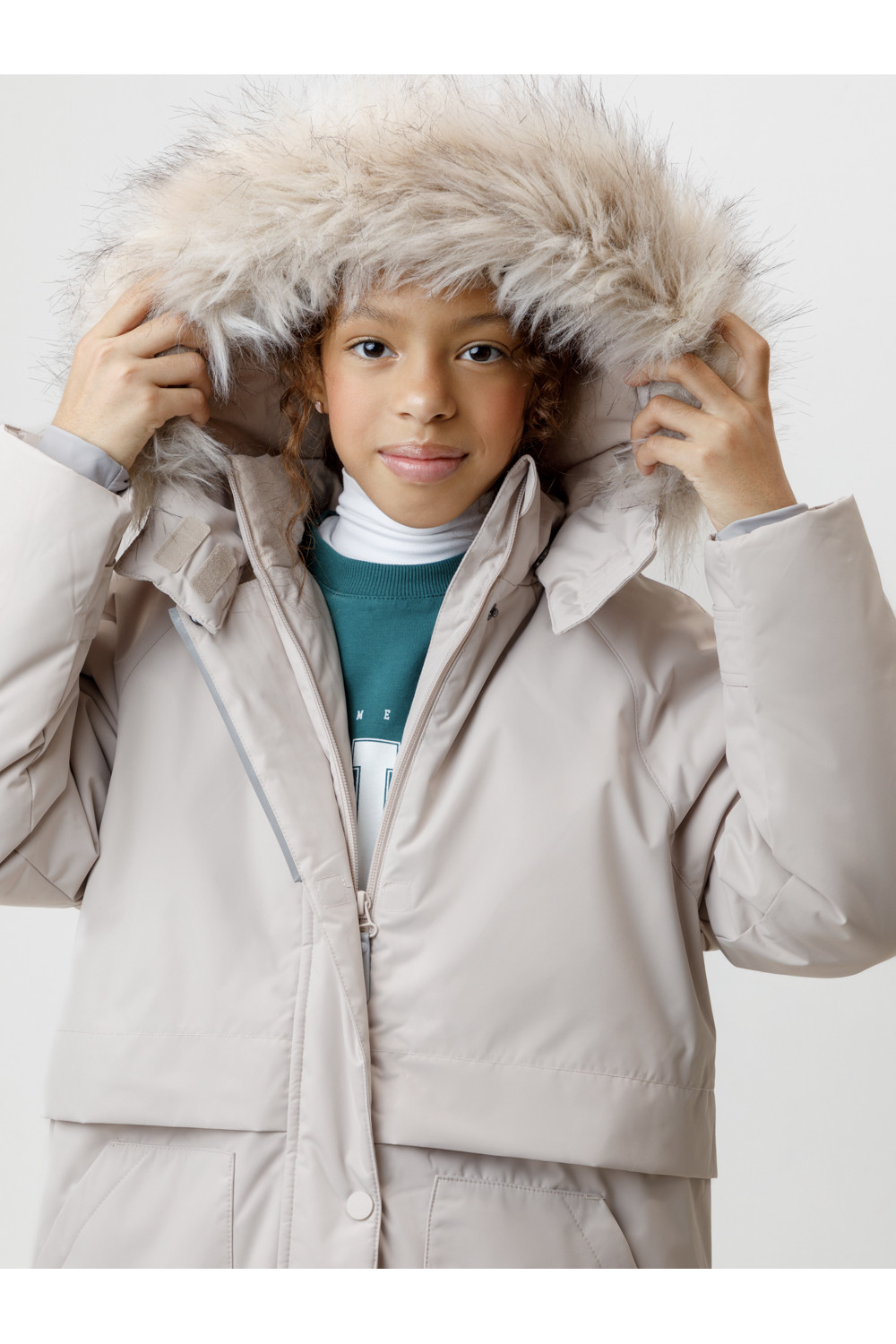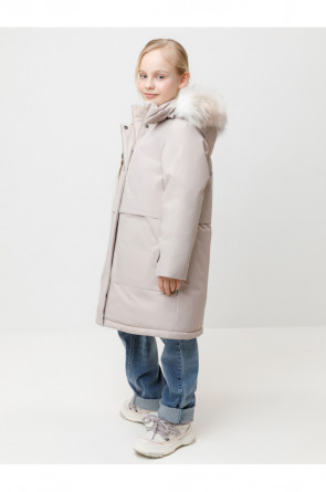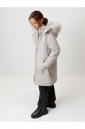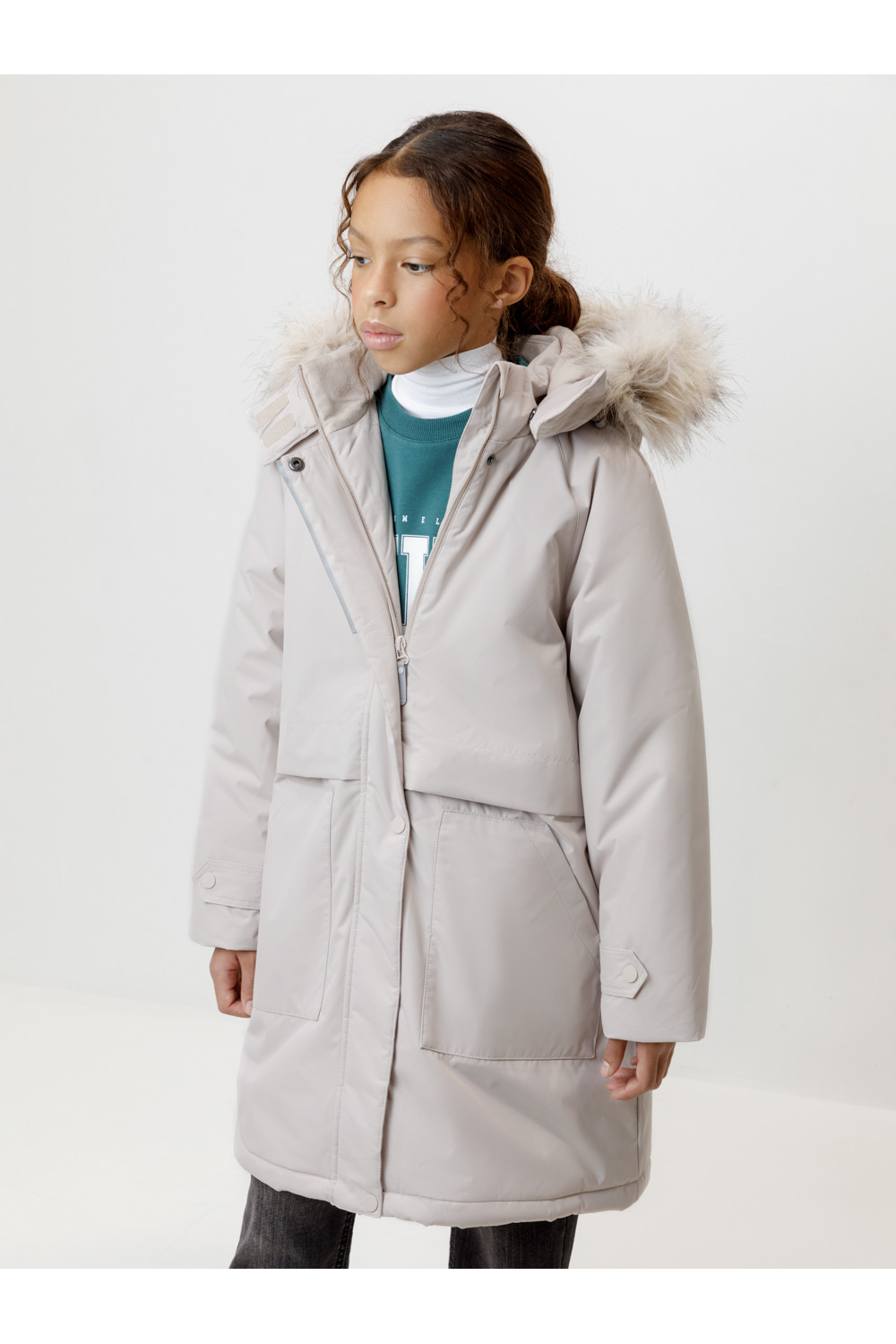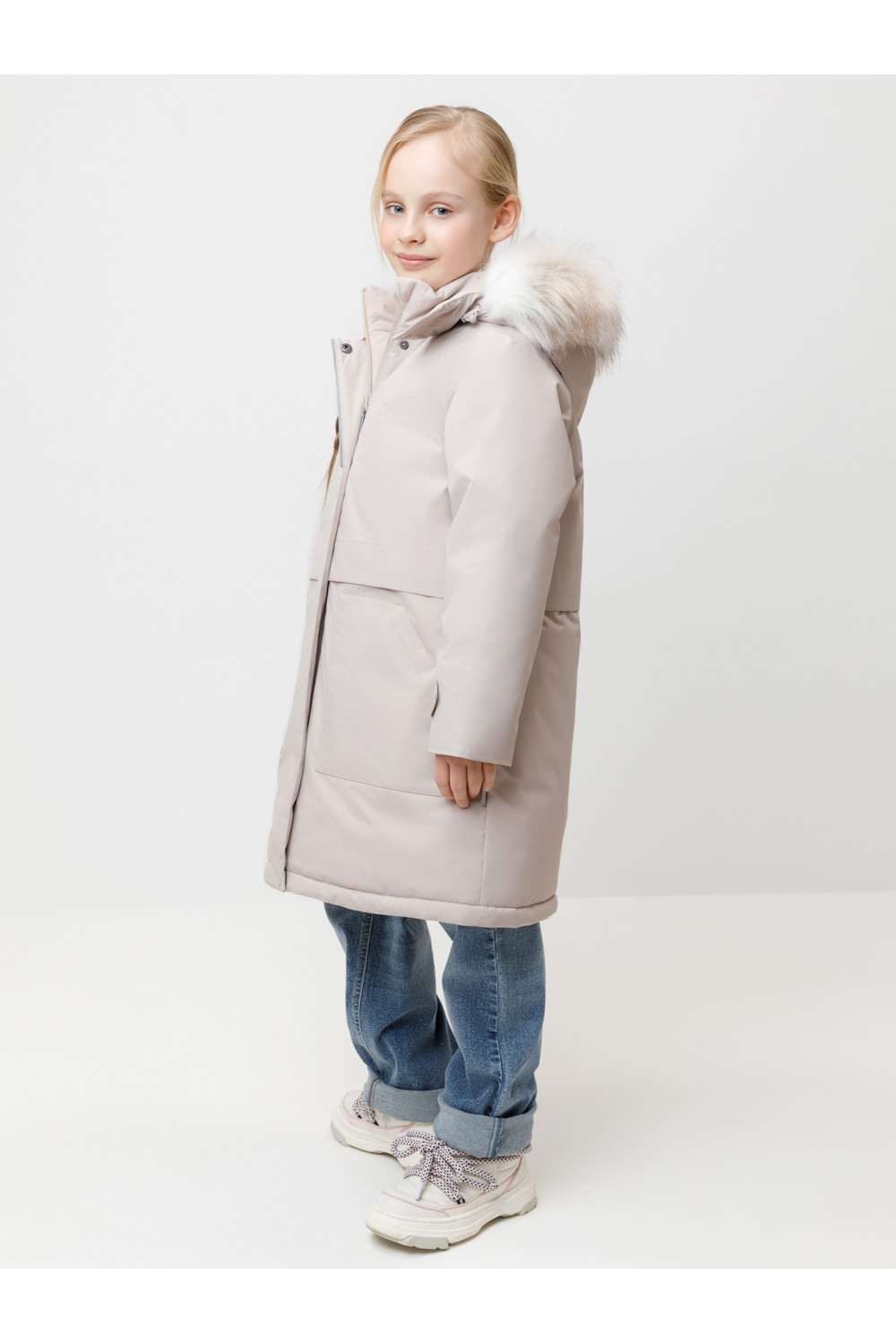 Зимняя удлинённая куртка для девочки с утеплителем SEE®: 250 г/м2. Выполнена из мембранной ткани с дополнительной тефлоновой обработкой, которая предохраняет изделие от загрязнений и отталкивает влагу. Подклад выполнен из 100% полиэстера Tricot. Куртка застёгивается на молнию, предусмотрена защита подбородка. Съёмный капюшон на кнопках и липучках имеет отстёгивающийся искусственный мех. На рукавах мягкие манжеты. По бокам два кармана с клапанами, внутри карман на молнии. По талии эластичная утяжка со стопперами для регулировки ширины пальто. Во всех изделиях верхнего ассортимента для безопасности ребёнка предусмотрены светоотражающие элементы.
