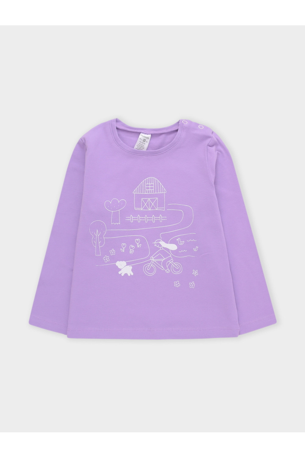 Лонгслив для девочки из гладкого эластичного трикотажа. В 92 и 98 размерах для удобства при одевании застёгивается на кнопки. Оригинальный принт выполнен из стойких текстильных гипоаллергенных красителей. Изделие сохраняет цвет и форму после многократных стирок. Все трикотажные полотна производятся в соответствии с нормами швейцарского сертификата ЭкоТекс.
