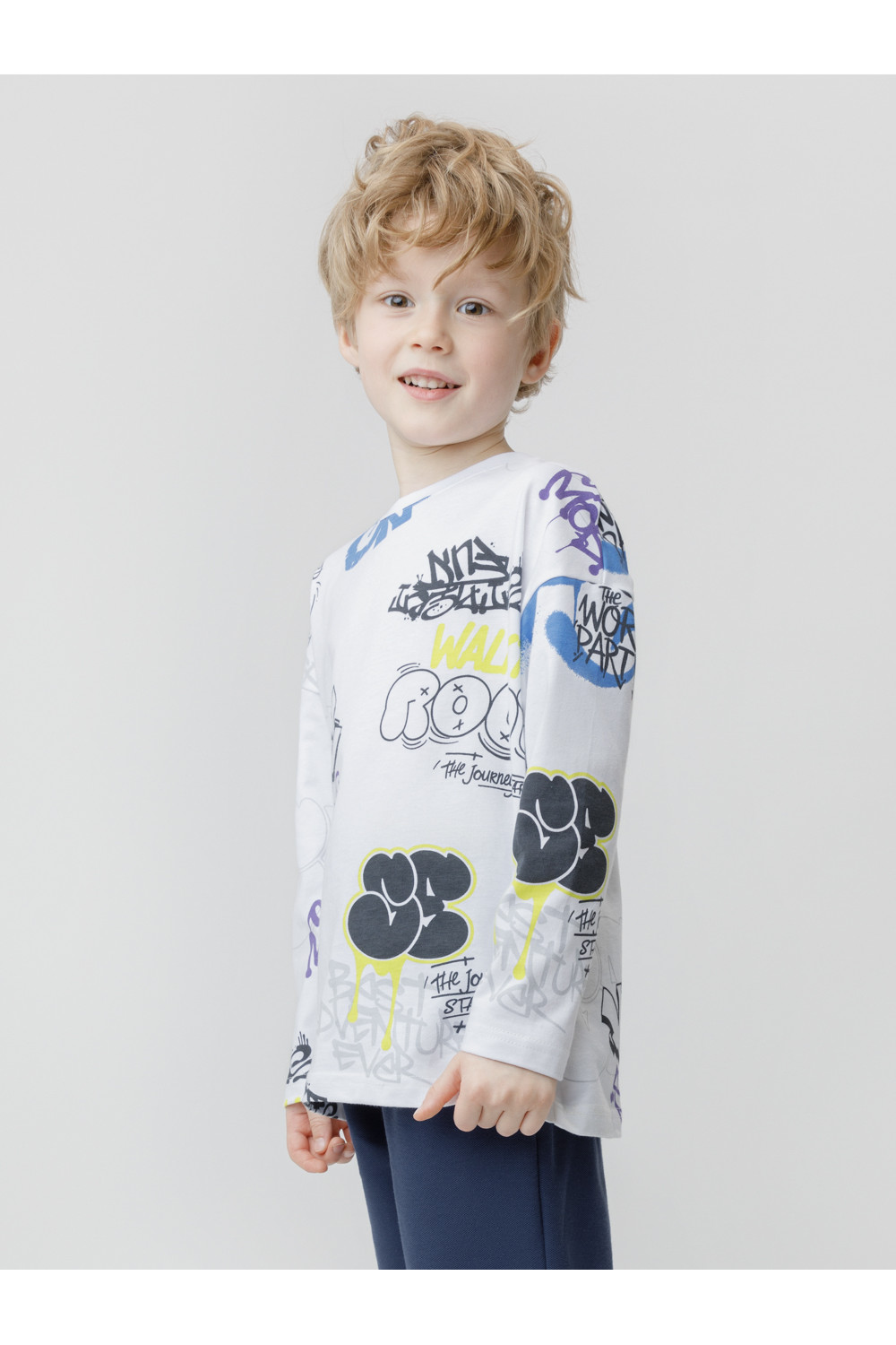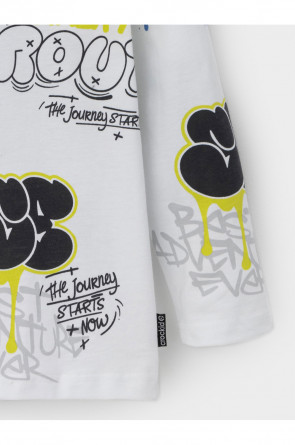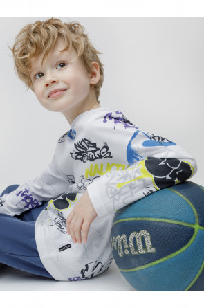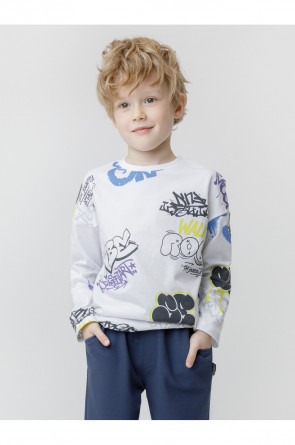 Тонкий джемпер для мальчика из высококачественного трикотажного полотна. Оригинальный рисунок выполнен из стойких текстильных красителей. Изделие сохраняет цвет и форму после многократных стирок. Все трикотажные полотна производятся в соответствии с нормами швейцарского сертификата ЭкоТекс.