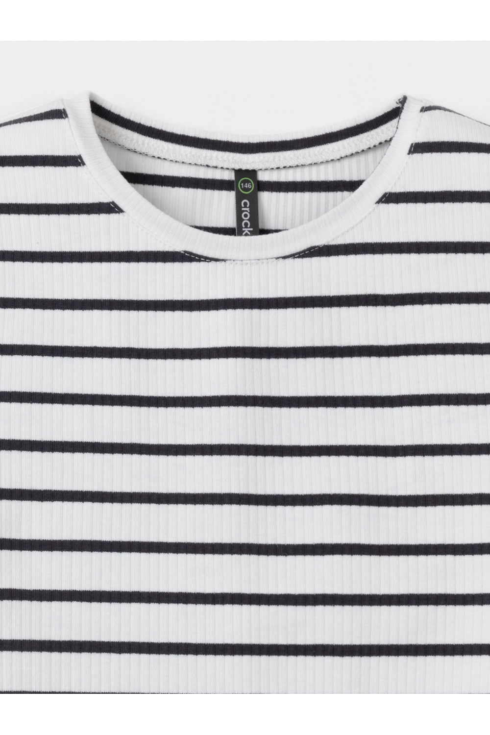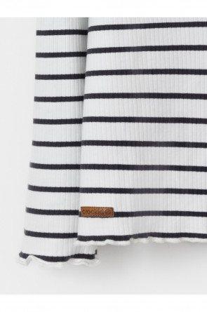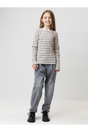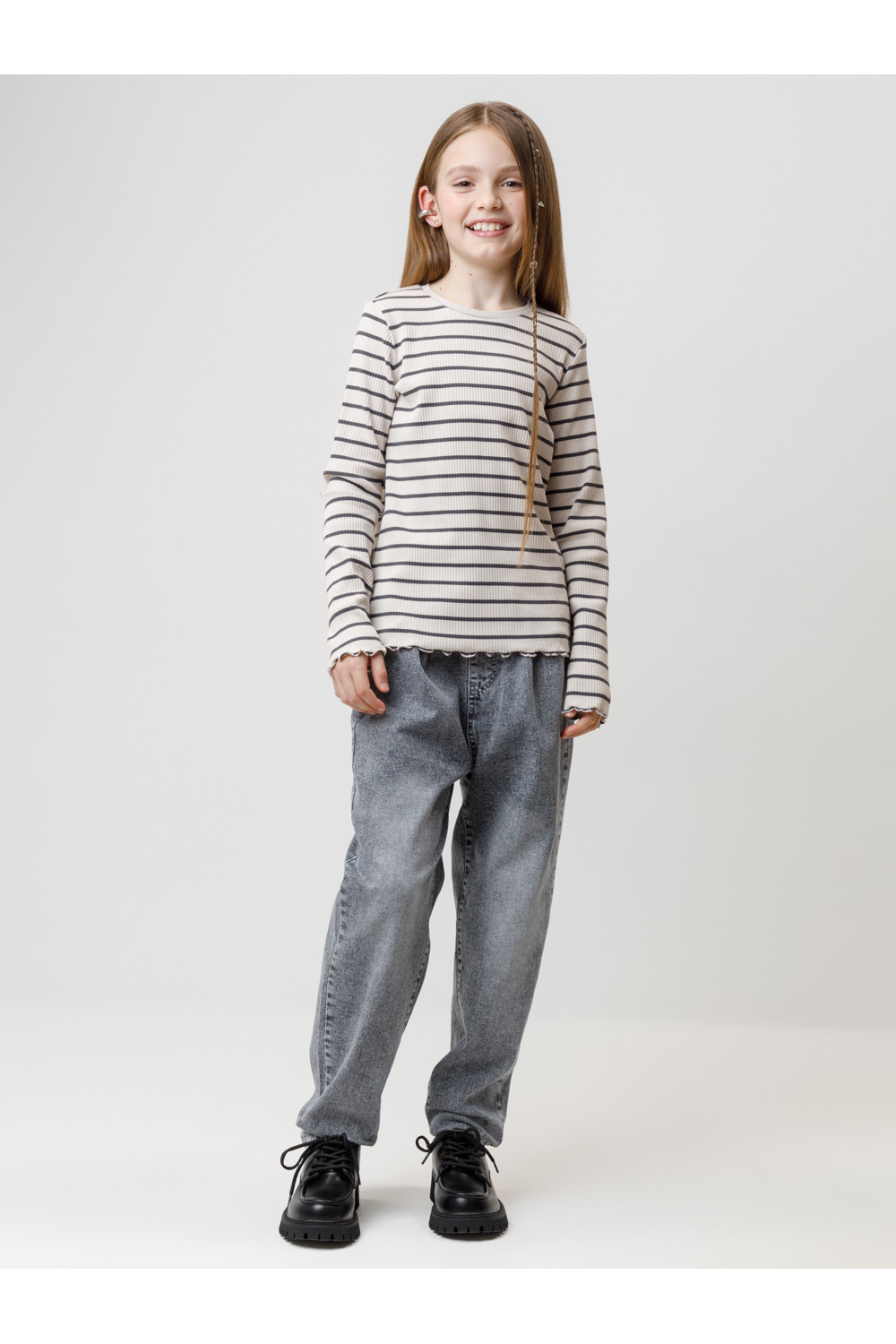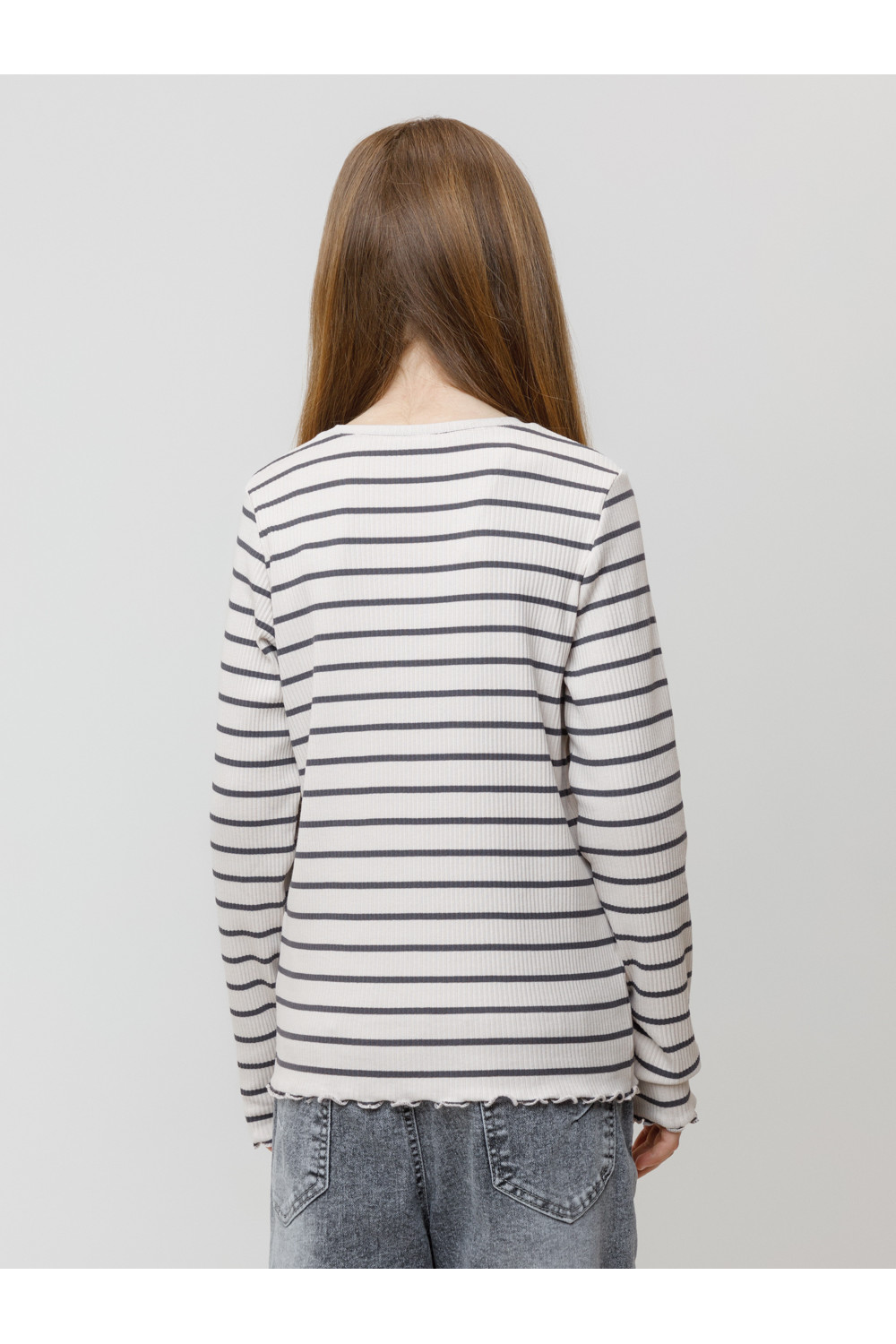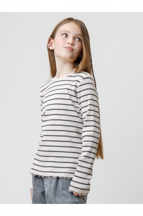 Лонгслив из эластичного трикотажа в рубчик для девочки. Оригинальный рисунок выполнен из стойких текстильных гипоаллергенных красителей. Изделие сохраняет цвет и форму после многократных стирок. Все трикотажные полотна производятся в соответствии с нормами швейцарского сертификата ЭкоТекс.
