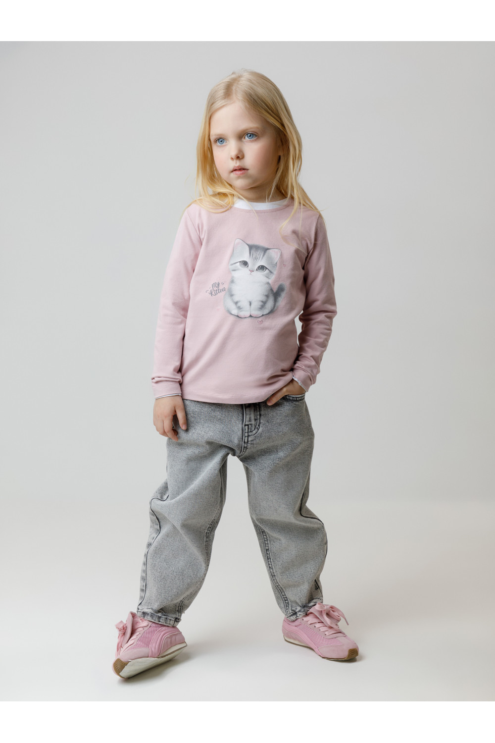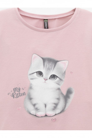 Лонгслив для девочки из гладкого эластичного трикотажа. В 92 и 98 размерах для удобства при одевании застёгивается на кнопки. Оригинальный принт выполнен из стойких текстильных гипоаллергенных красителей. Изделие сохраняет цвет и форму после многократных стирок. Все трикотажные полотна производятся в соответствии с нормами швейцарского сертификата ЭкоТекс.