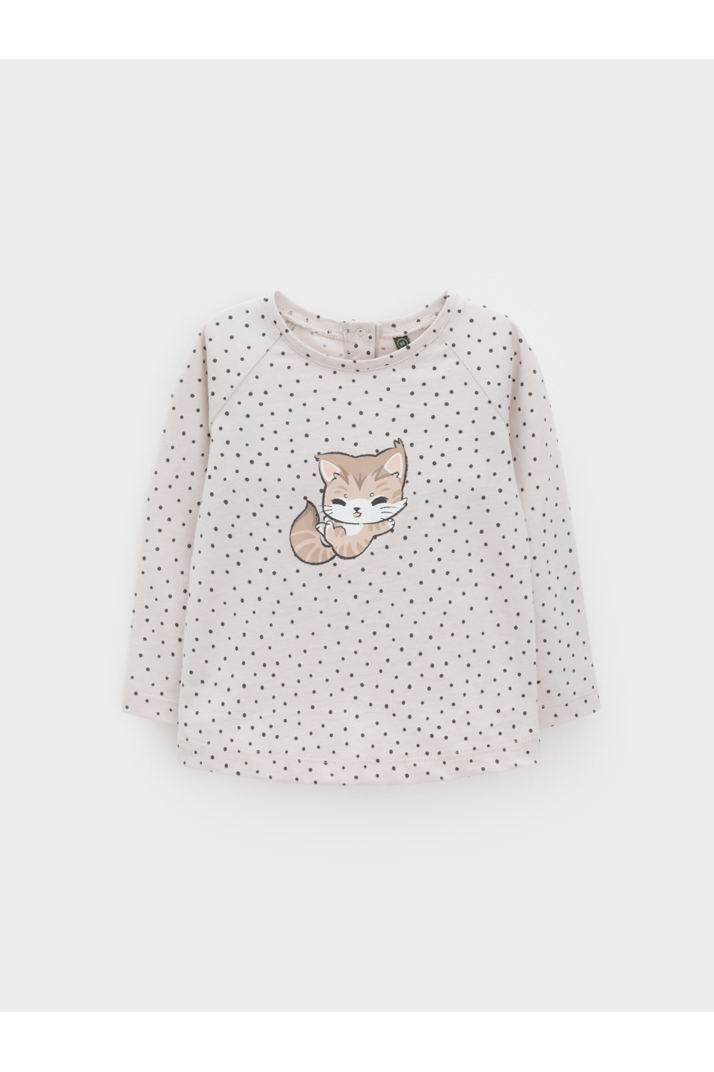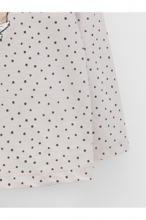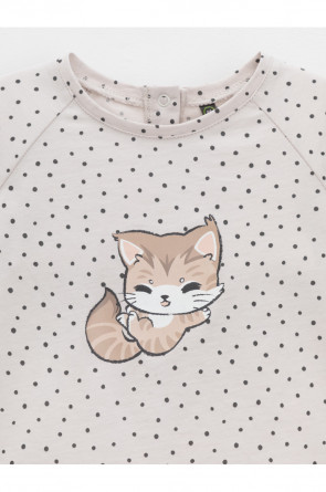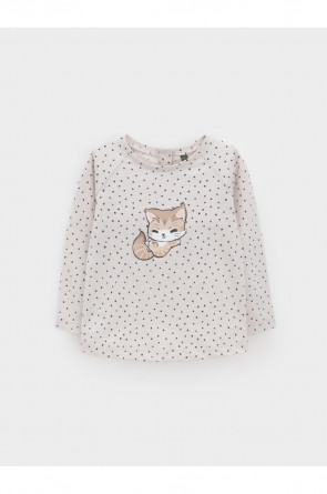 Лонгслив для девочки из гладкого трикотажа, произведённого из высококачественного натурального хлопка. Застёгивается на спинке на планку с кнопками. Оригинальный принт выполнен из стойких текстильных гипоаллергенных красителей. Изделие сохраняет цвет и форму после многократных стирок. Все трикотажные полотна производятся в соответствии с нормами швейцарского сертификата ЭкоТекс.
