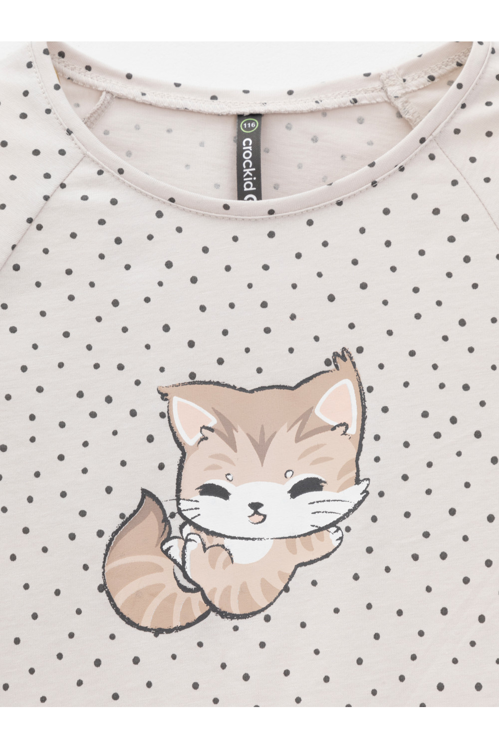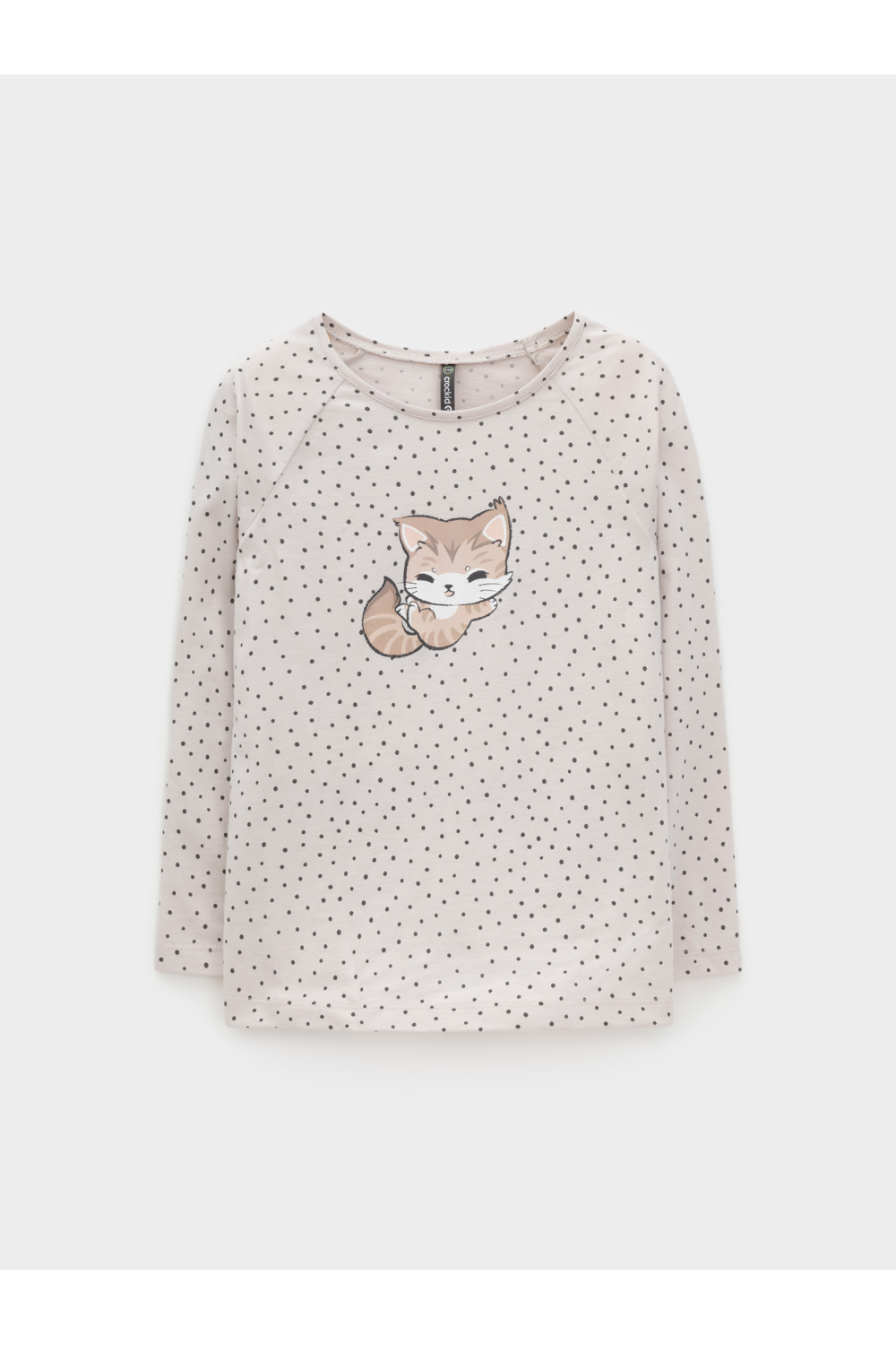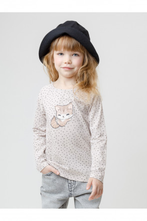 Лонгслив для девочки из гладкого трикотажа, произведённого из высококачественного натурального хлопка. Застёгивается на спинке на планку с кнопками в размерах 92 и 98. Оригинальный принт выполнен из стойких текстильных гипоаллергенных красителей. Изделие сохраняет цвет и форму после многократных стирок. Все трикотажные полотна производятся в соответствии с нормами швейцарского сертификата ЭкоТекс.