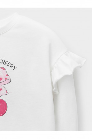 Лонгслив для девочки с нарядными рюшами из высококачественного трикотажного полотна, изготовленного из натурального хлопка. Изделие сохраняет цвет и форму после многократных стирок. Все трикотажные полотна производятся в соответствии с нормами швейцарского сертификата ЭкоТекс.