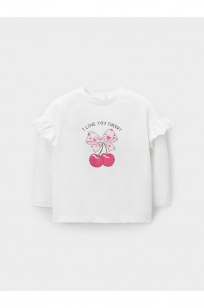 Лонгслив для девочки с нарядными рюшами из высококачественного трикотажного полотна, изготовленного из натурального хлопка. Изделие сохраняет цвет и форму после многократных стирок. Все трикотажные полотна производятся в соответствии с нормами швейцарского сертификата ЭкоТекс.