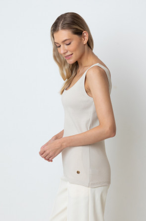 Базовая майка из трикотажного полотна в рубчик с добавлением эластана.