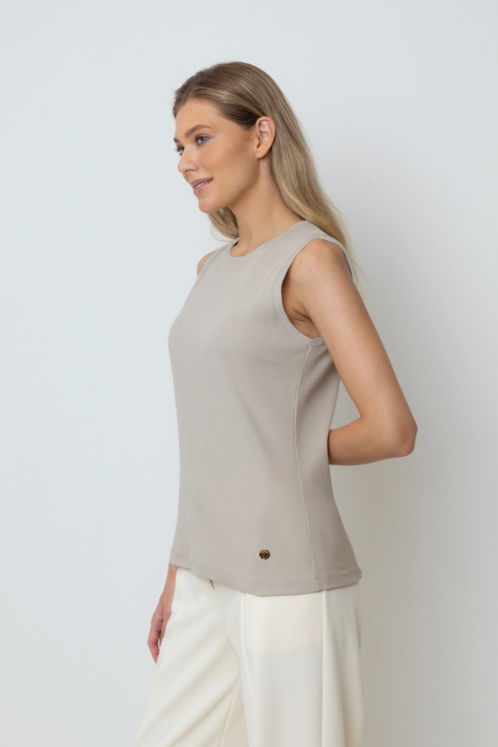 Базовая майка из трикотажного полотна в рубчик с добавлением эластана.