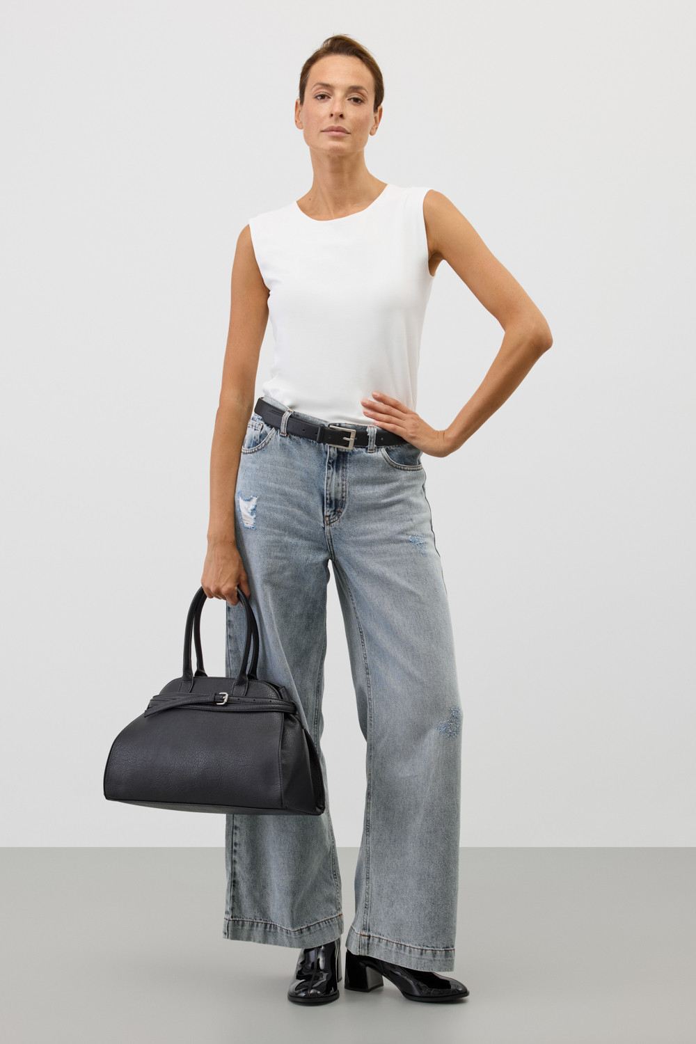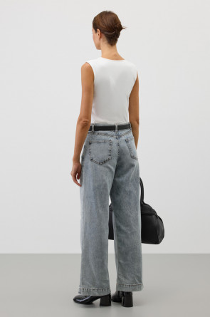 Классическим элементом гардероба является базовый топ из хлопка. Широкие бретели делают изделие комфортным в носке и универсальным в повседневной жизни.
