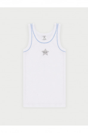 Трикотажная майка на лямках из натурального хлопка. Оригинальная набивка и принт выполнены из стойких, гипоаллергенных текстильных красителей. Изделие сохраняет цвет и форму после многократных стирок. Все трикотажные полотна производятся в соответствии с нормами Швейцарского сертификата ЭкоТекс.