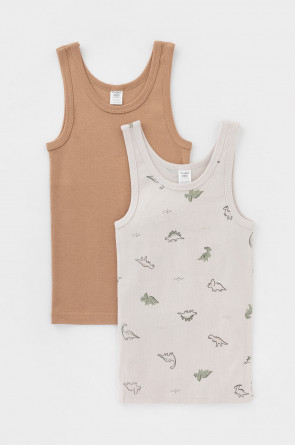 Трикотажные майки в комплекте 2 шт на лямках из натурального хлопка. Оригинальная набивка выполнена из стойких, гипоаллергенных текстильных красителей. Изделие сохраняет цвет и форму после многократных стирок. Все трикотажные полотна производятся в соответсвии с нормами Швейцарского сертификата ЭкоТекс.
