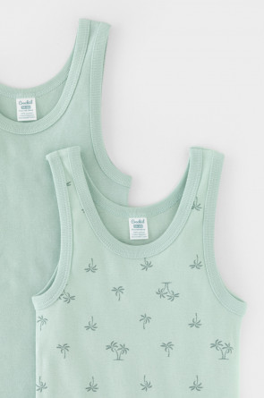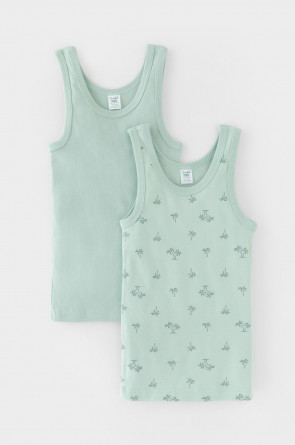 Трикотажные майки в комплекте 2 шт на лямках из натурального хлопка. Оригинальная набивка выполнена из стойких, гипоаллергенных текстильных красителей. Изделие сохраняет цвет и форму после многократных стирок. Все трикотажные полотна производятся в соответсвии с нормами Швейцарского сертификата ЭкоТекс.