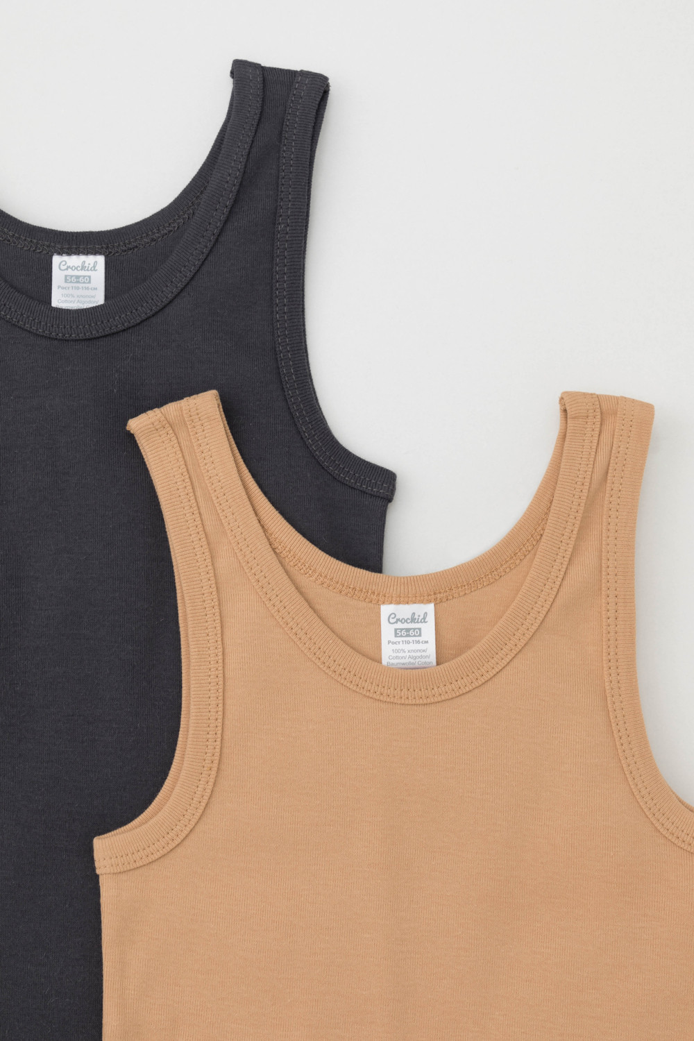 Трикотажные майки в комплекте 2 шт на лямках из натурального хлопка. Оригинальная набивка выполнена из стойких, гипоаллергенных текстильных красителей. Изделие сохраняет цвет и форму после многократных стирок. Все трикотажные полотна производятся в соответсвии с нормами Швейцарского сертификата ЭкоТекс.