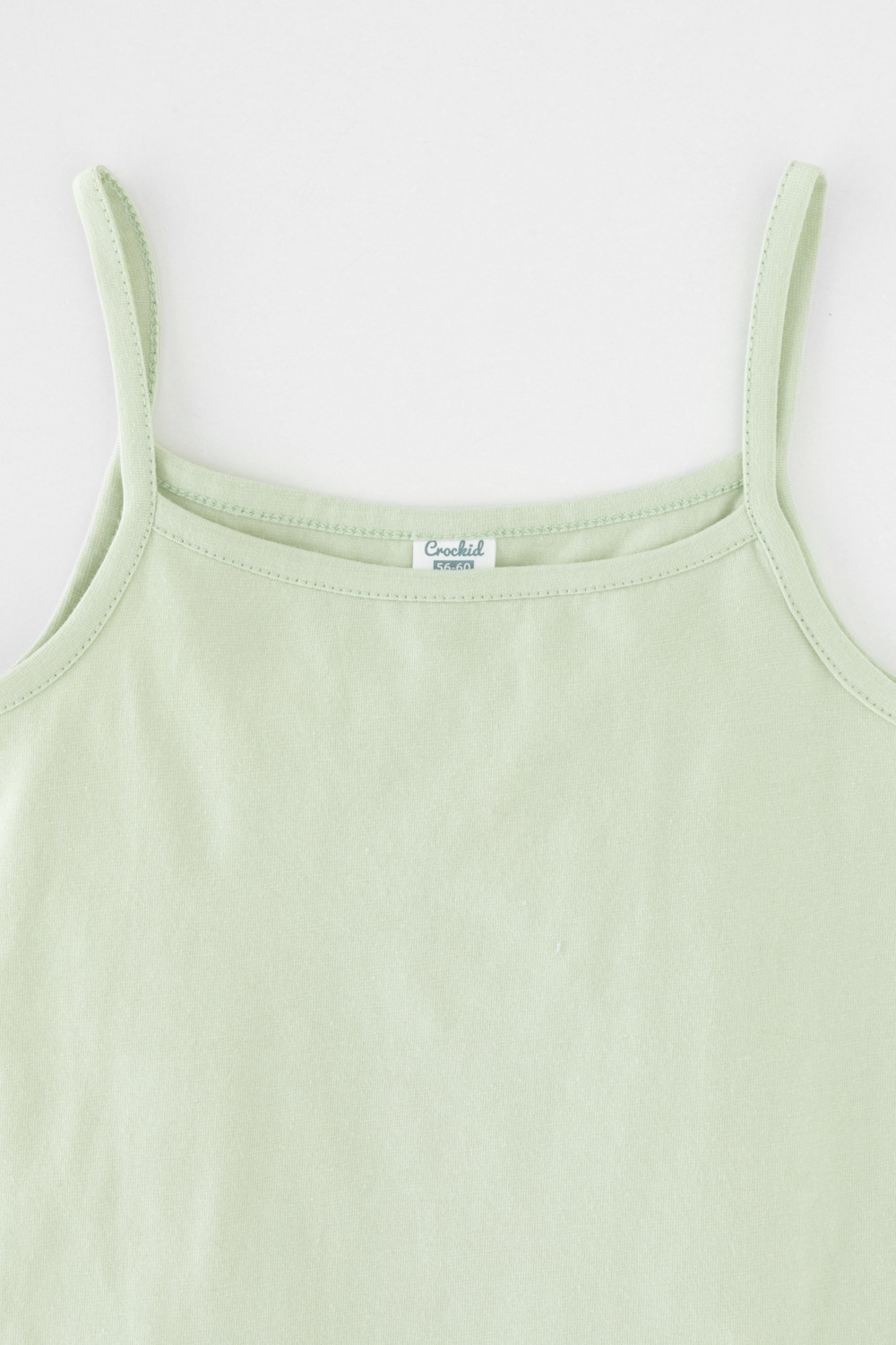 Трикотажные майки в комплекте 2 шт на тонких бретелях из однотонного супрема с эластаном, горловина спинки и проймы обработаны кантом, по горловине полочки декоративная эластичная тесьма и атласный бантик. Сохраняют цвет и форму после многократных стирок. Все трикотажные полотна производятся в соответсвии с нормами Швейцарского сертификата ЭкоТекс.