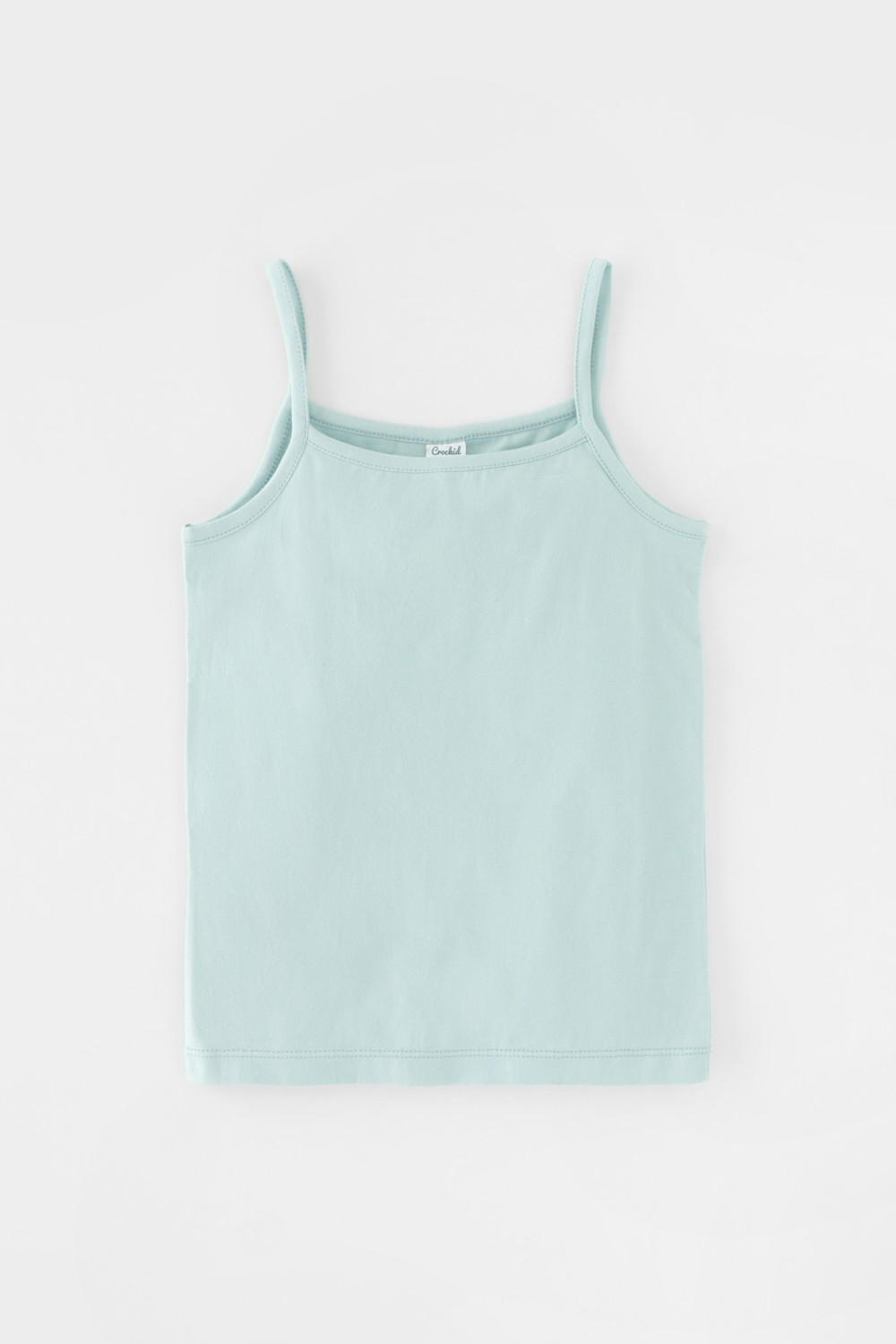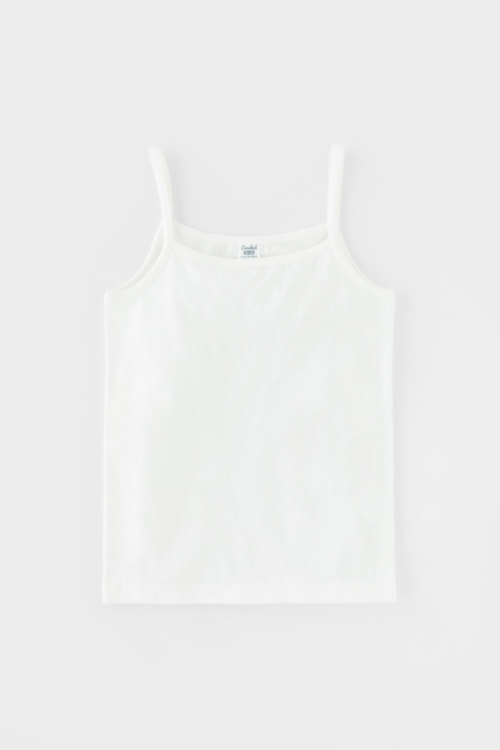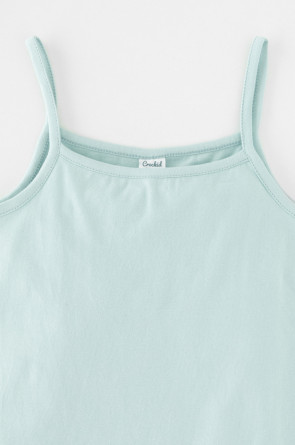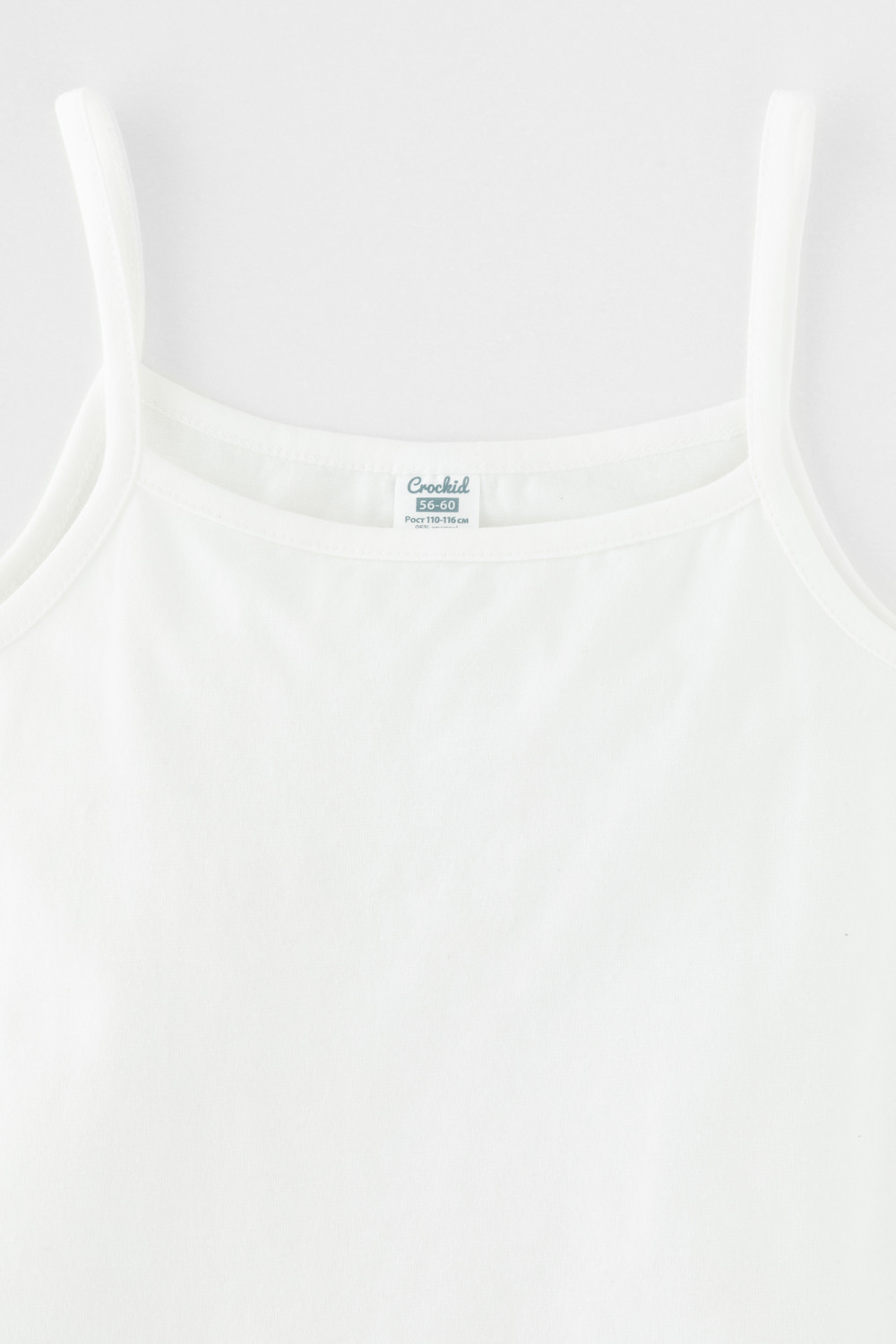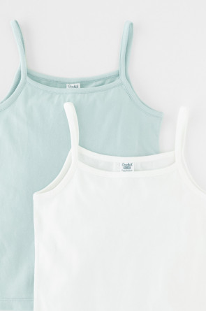 Трикотажные майки в комплекте 2 шт на тонких бретелях из однотонного супрема с эластаном, горловина спинки и проймы обработаны кантом, по горловине полочки декоративная эластичная тесьма и атласный бантик. Сохраняют цвет и форму после многократных стирок. Все трикотажные полотна производятся в соответсвии с нормами Швейцарского сертификата ЭкоТекс.