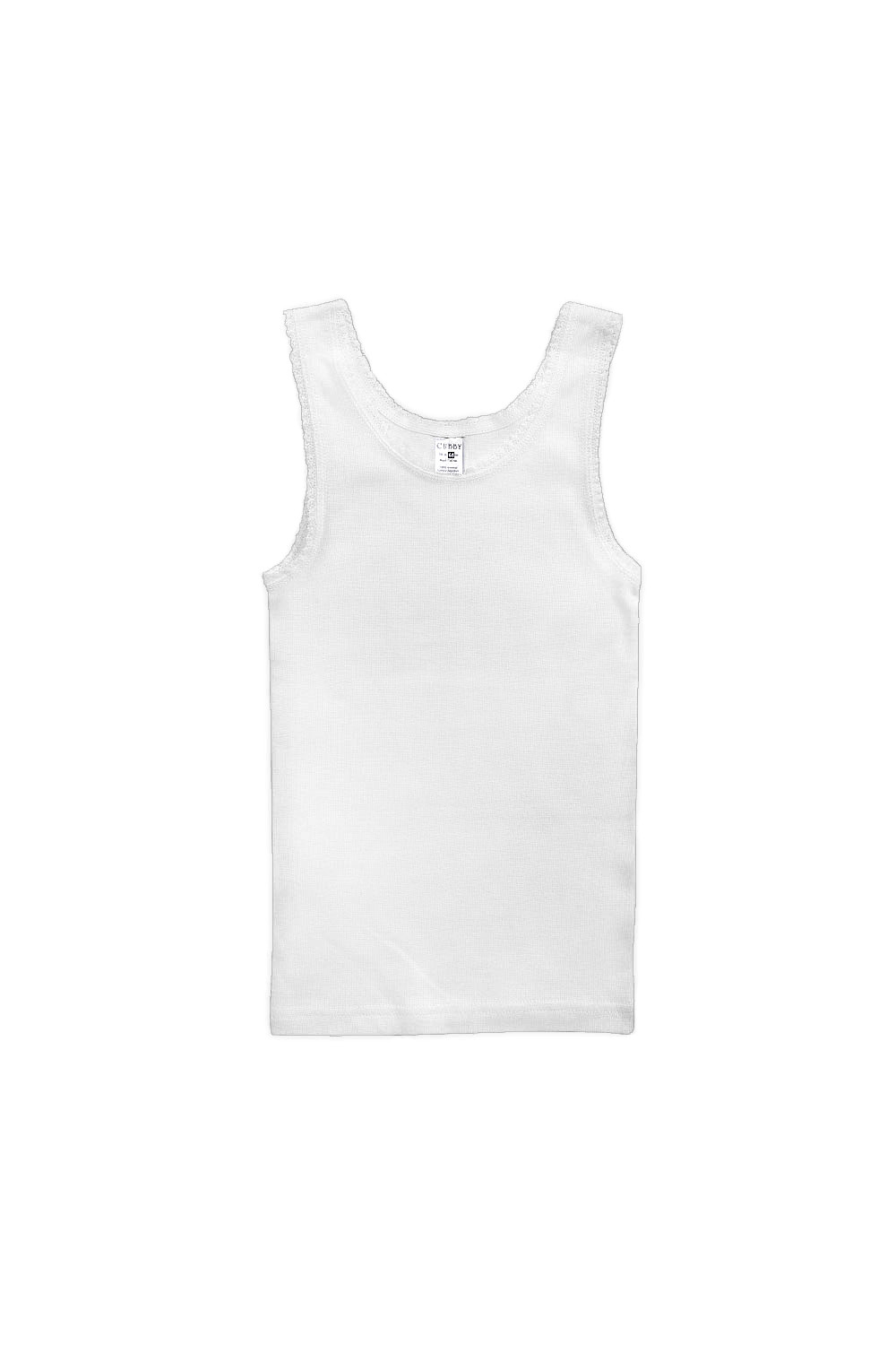 Состав: 100% хлопок. Майка для девочки из однотонного ластика, бесшовная, горловина и проймы обработаны декоративной эластичной тесьмой.