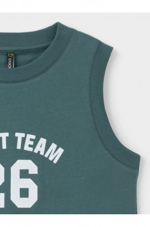 Майка для мальчика из высококачественного трикотажного полотна. Оригинальный принт выполнен из стойких текстильных красителей. Изделие сохраняет цвет и форму после многократных стирок. Все трикотажные полотна производятся в соответствии с нормами швейцарского сертификата ЭкоТекс.