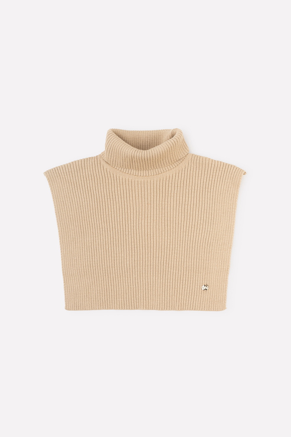 Уютная вязаная манишка с высоким воротником из итальянской шерсти и акрила. Шерсть в составе хорошо удерживает тепло, а волокна акрила делают изделие мягким и предотвращают деформацию и появление катышек. Лаконичный крой хорошо сочетается с верхней одеждой.