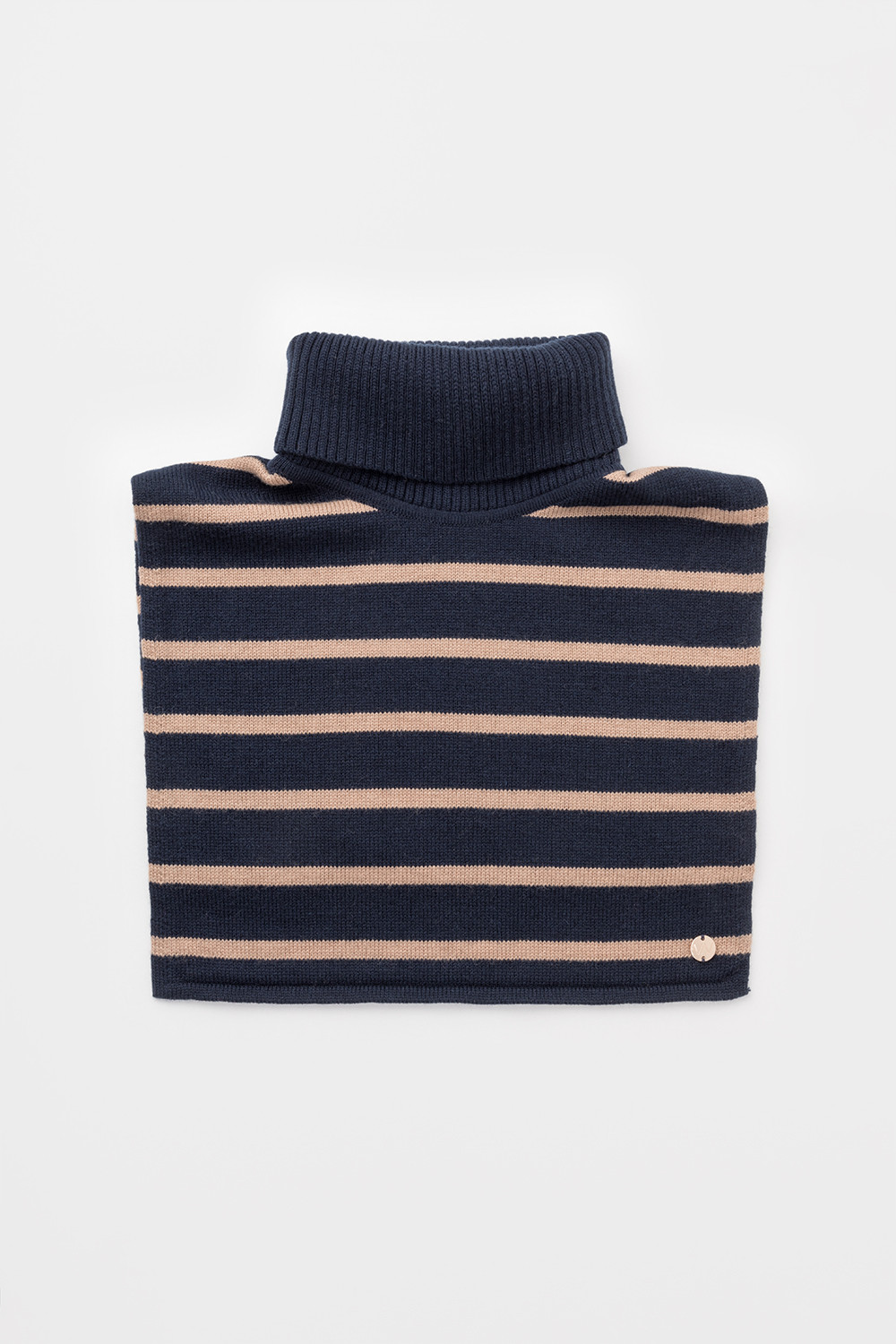 Уютная вязаная манишка с высоким воротником из шерсти и акрила. Шерсть в составе хорошо удерживает тепло, а волокна акрила делают изделие мягким и предотвращают деформацию и появление катышек. Лаконичный крой хорошо сочетается с верхней одеждой.