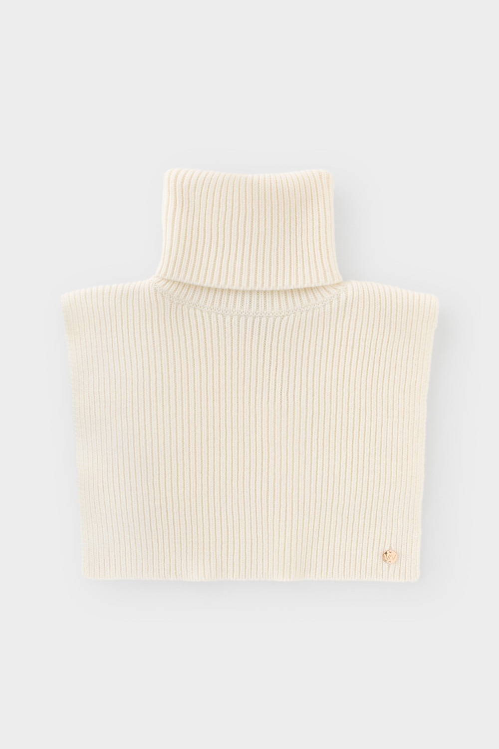 Уютная вязаная манишка с высоким воротником из шерсти и акрила. Шерсть в составе хорошо удерживает тепло, а волокна акрила делают изделие мягким и предотвращают деформацию и появление катышек. Лаконичный крой хорошо сочетается с верхней одеждой.