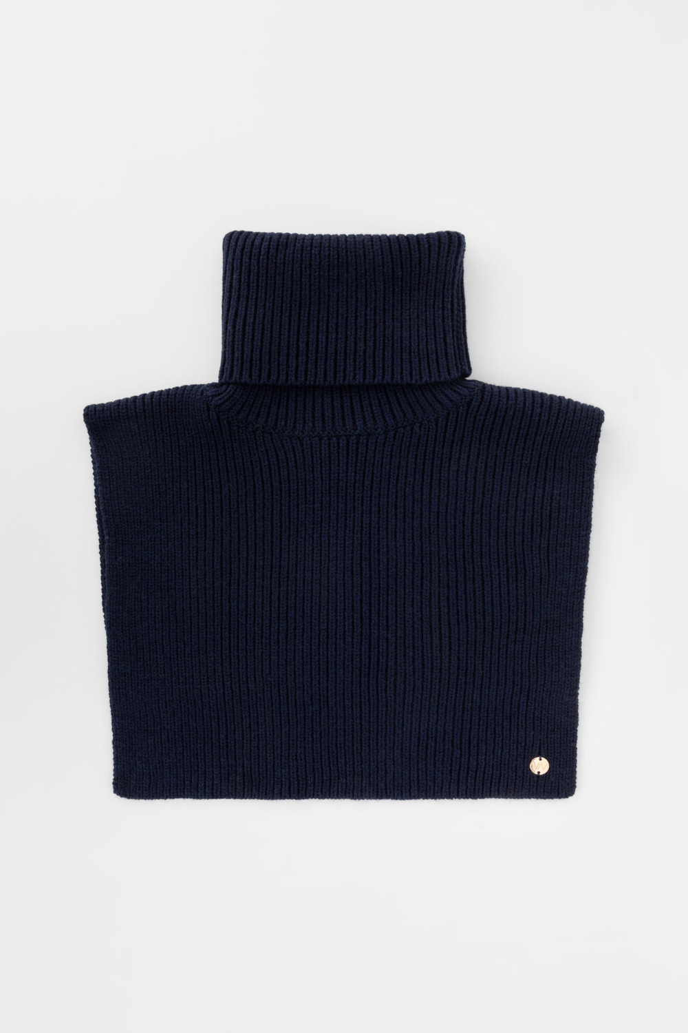 Уютная вязаная манишка с высоким воротником из шерсти и акрила. Шерсть в составе хорошо удерживает тепло, а волокна акрила делают изделие мягким и предотвращают деформацию и появление катышек. Лаконичный крой хорошо сочетается с верхней одеждой.