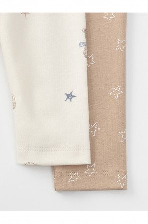 Брюки для новорождённых из мягкого эластичного трикотажа, произведённого из натурального хлопка. В упаковке 2 штуки. Пояс на резинке. Оригинальная набивка выполнена из стойких гипоаллергенных текстильных красителей. Все трикотажные полотна производятся в соответствии с нормами швейцарского сертификата ЭкоТекс.