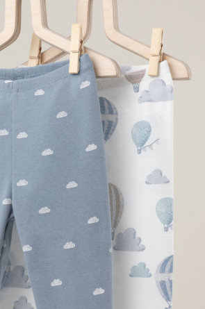 Брюки для новорождённых из мягкого эластичного трикотажа, произведённого из натурального хлопка. В упаковке 2 штуки. Пояс на резинке. Оригинальная набивка выполнена из стойких гипоаллергенных текстильных красителей. Все трикотажные полотна производятся в соответствии с нормами Швейцарского сертификата ЭкоТекс.