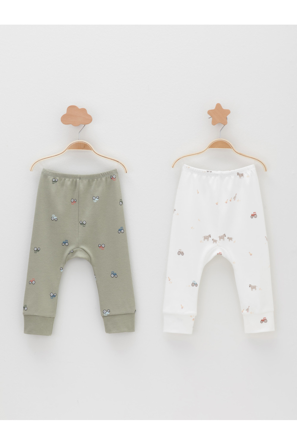Брюки для новорождённых из мягкого эластичного трикотажа интерлок, произведённого из натурального хлопка. В упаковке 2 штуки. Пояс на резинке. Оригинальная набивка выполнена из стойких гипоаллергенных текстильных красителей. Все трикотажные полотна производятся в соответствии с нормами швейцарского сертификата ЭкоТекс.