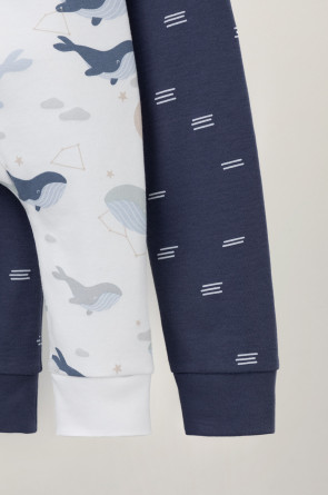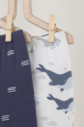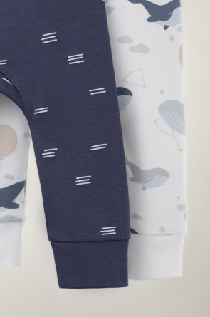 Брюки для новорождённых из мягкого эластичного трикотажа интерлок, произведённого из натурального хлопка. В упаковке 2 штуки. Пояс на резинке. Оригинальная набивка выполнена из стойких гипоаллергенных текстильных красителей. Все трикотажные полотна производятся в соответствии с нормами Швейцарского сертификата ЭкоТекс.