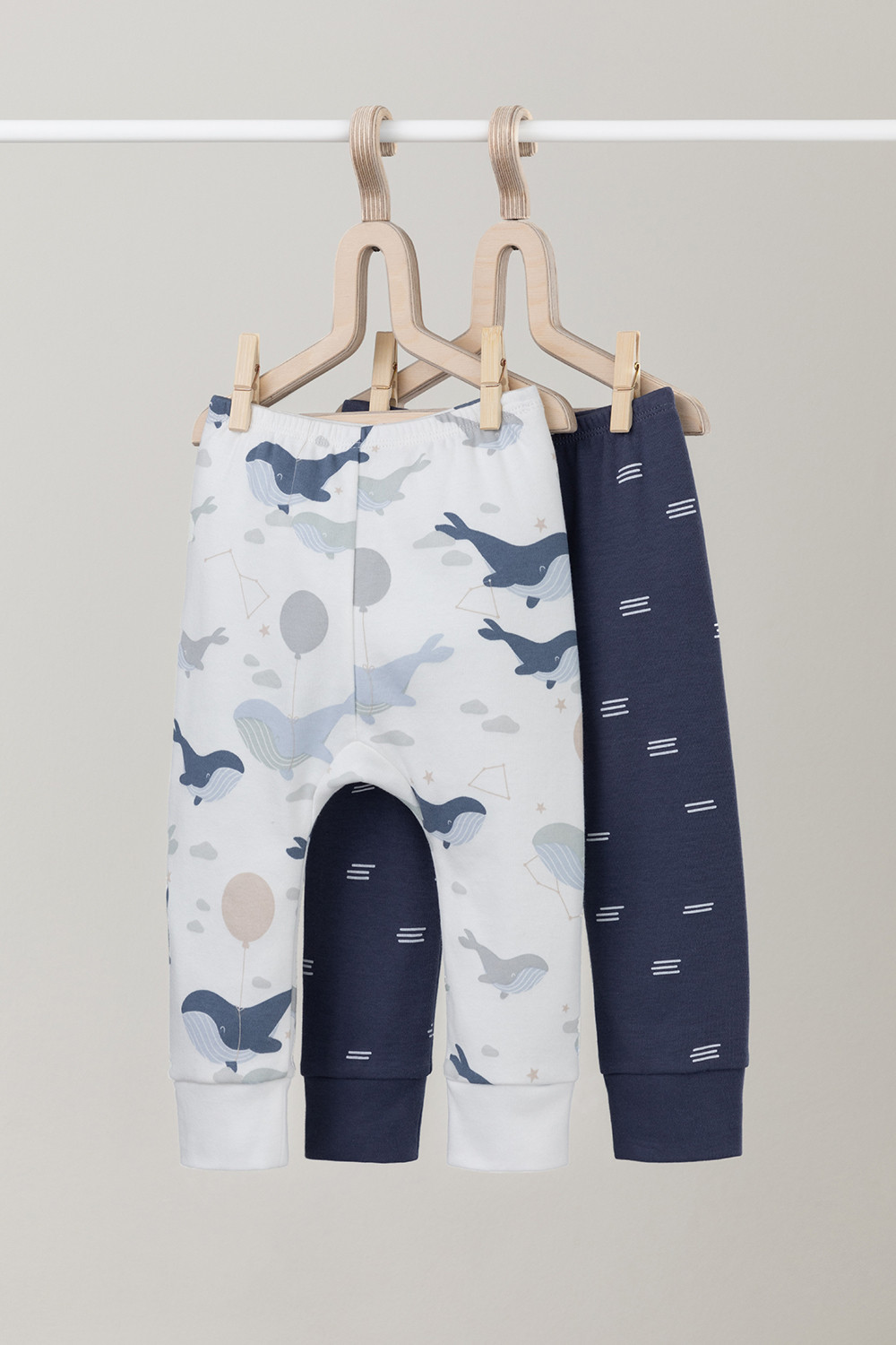 Брюки для новорождённых из мягкого эластичного трикотажа интерлок, произведённого из натурального хлопка. В упаковке 2 штуки. Пояс на резинке. Оригинальная набивка выполнена из стойких гипоаллергенных текстильных красителей. Все трикотажные полотна производятся в соответствии с нормами Швейцарского сертификата ЭкоТекс.