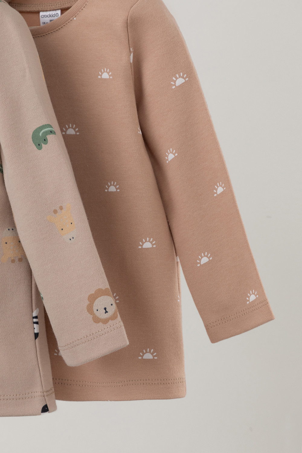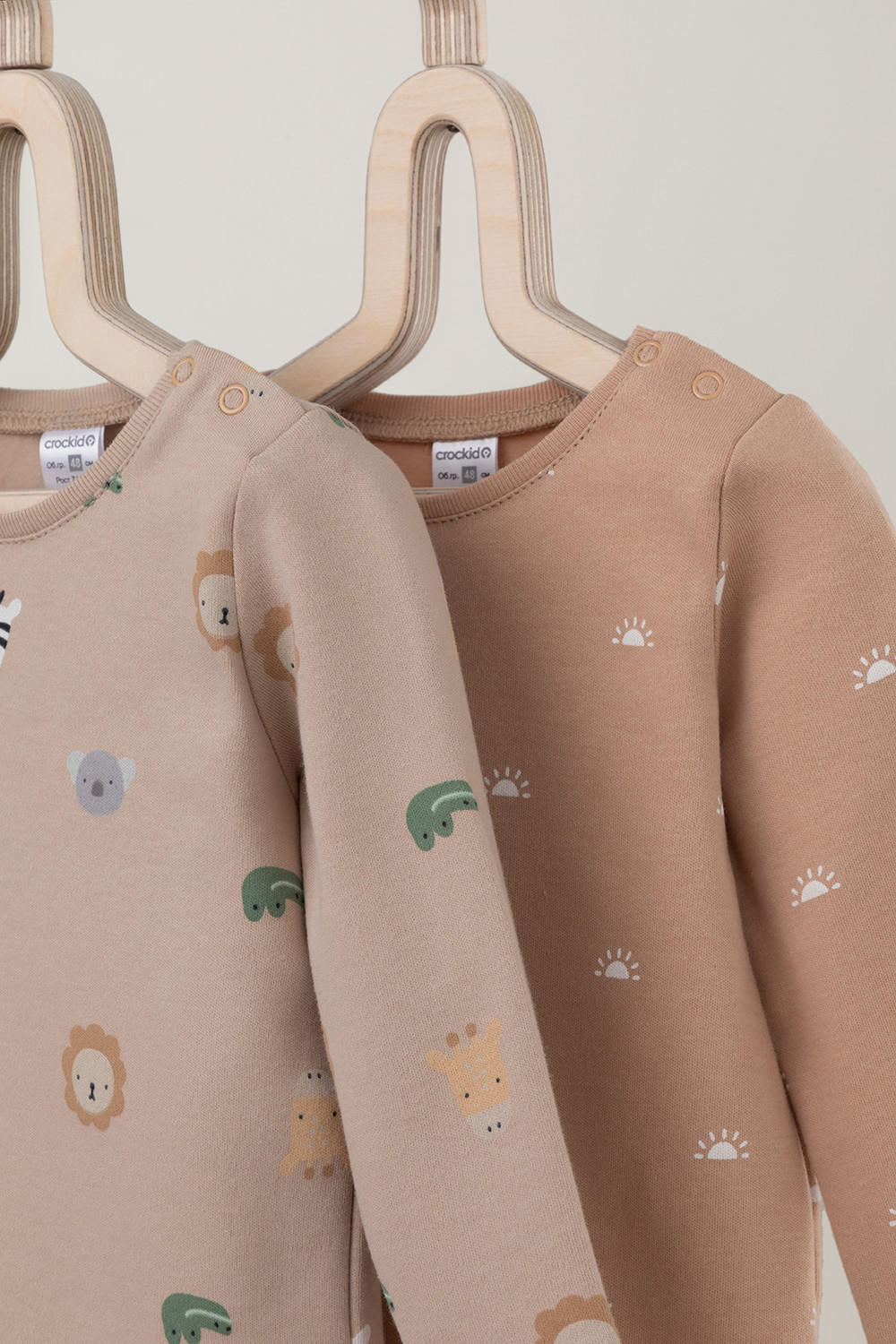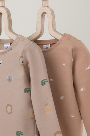 Джемперы лонгсливы для новорождённых из мягкого эластичного трикотажа интерлок, произведённого из натурального хлопка. В упаковке 2 штуки. Застёгиваются на плече на кнопки. Оригинальная набивка выполнена из стойких гипоаллергенных текстильных красителей. Все трикотажные полотна производятся в соответствии с нормами Швейцарского сертификата ЭкоТекс.