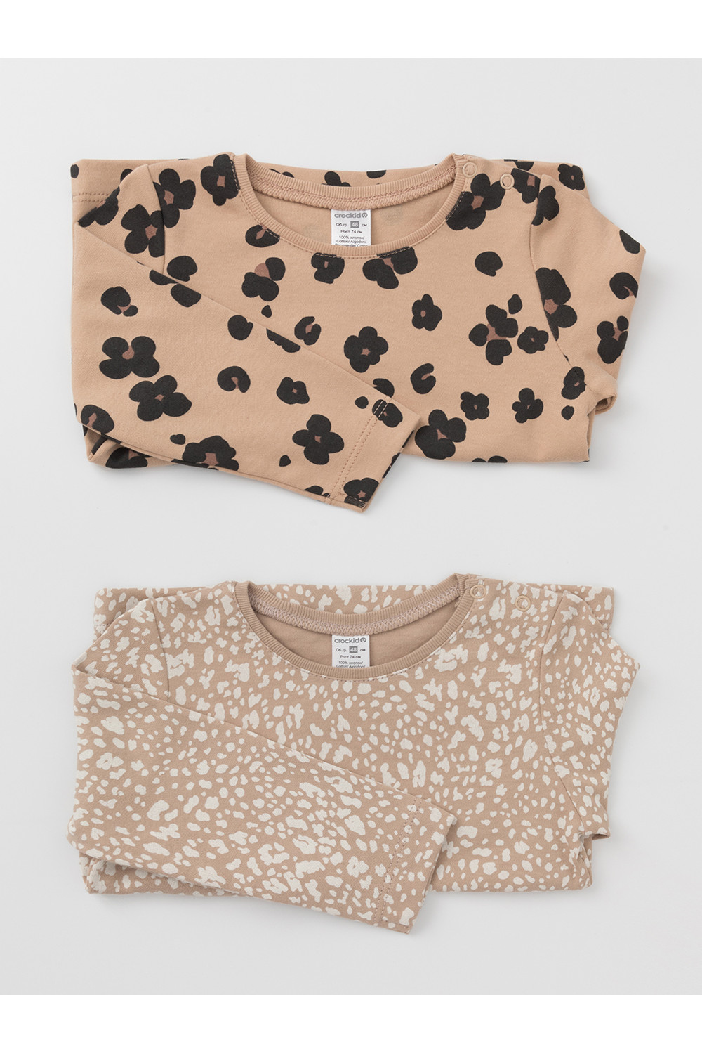 Джемперы лонгсливы для новорождённых из мягкого эластичного трикотажа интерлок, произведённого из натурального хлопка. В упаковке 2 штуки. Застёгиваются на плече на кнопки. Оригинальная набивка выполнена из стойких гипоаллергенных текстильных красителей. Все трикотажные полотна производятся в соответствии с нормами швейцарского сертификата ЭкоТекс.