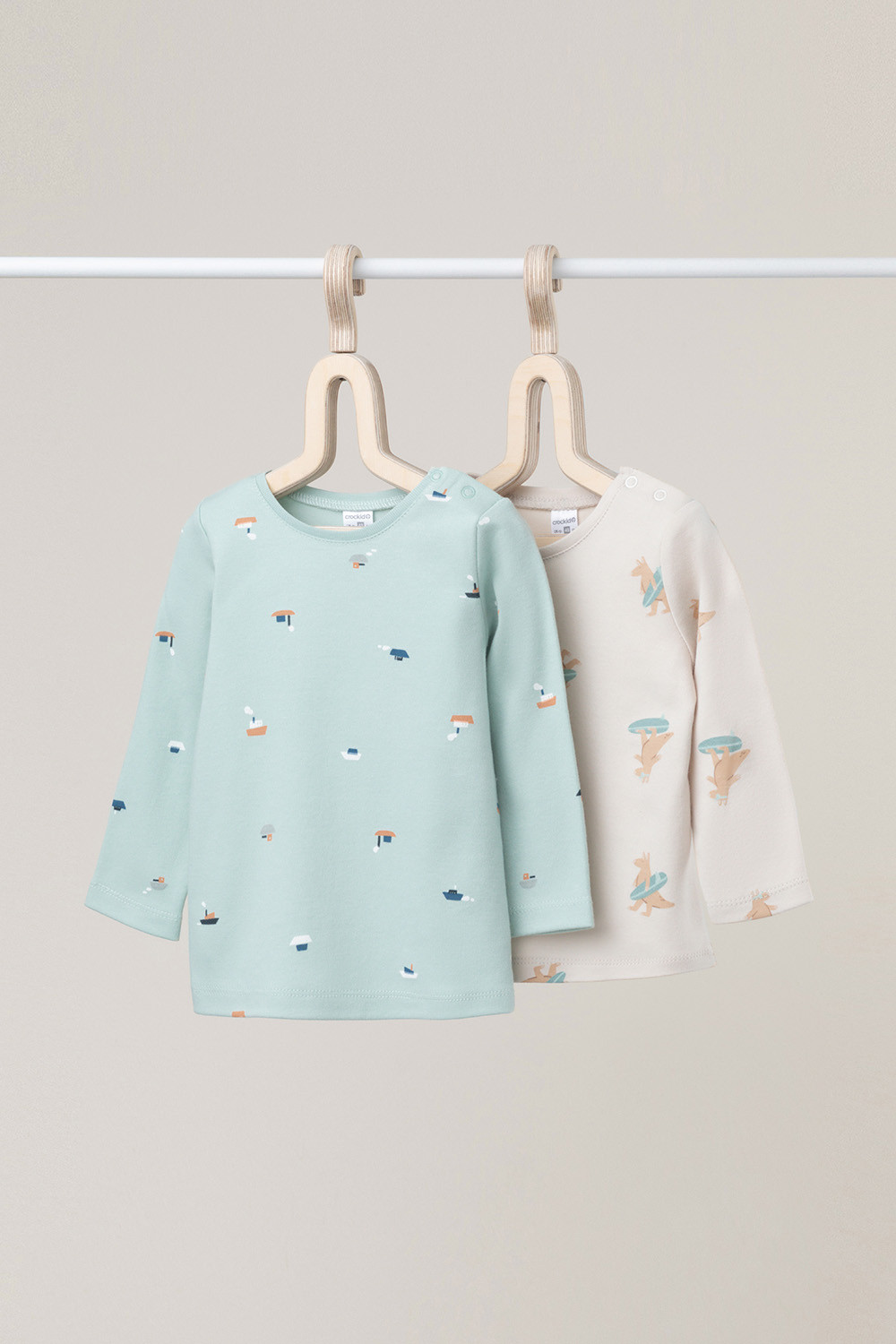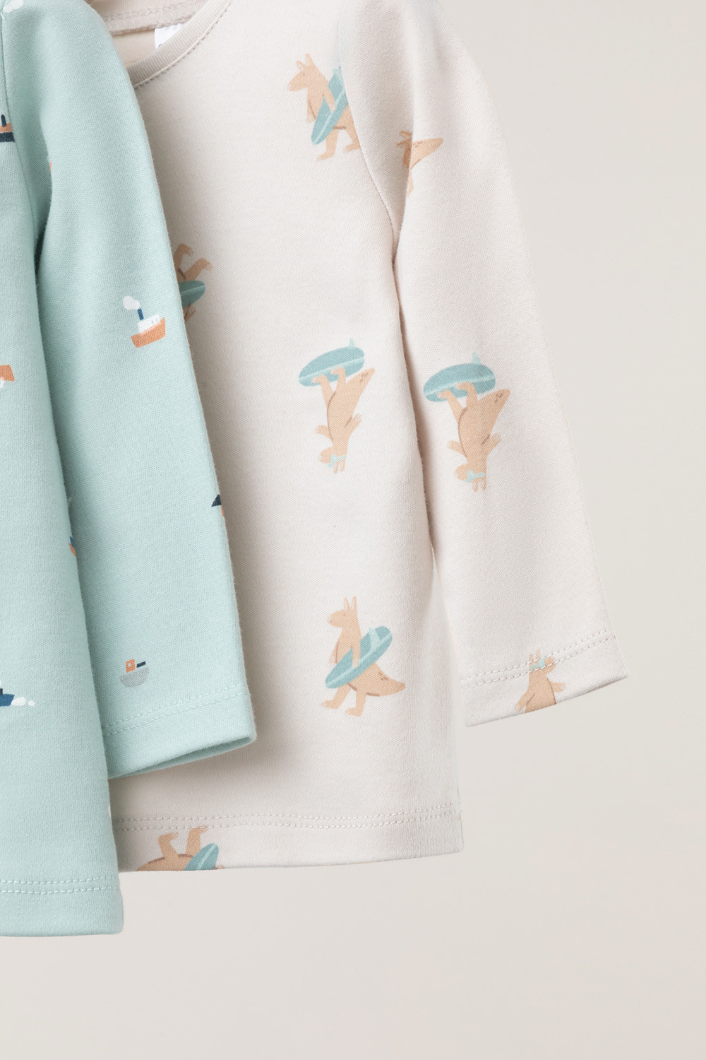 Джемперы лонгсливы для новорождённых из мягкого эластичного трикотажа интерлок, произведённого из натурального хлопка. В упаковке 2 штуки. Застёгиваются на плече на кнопки. Оригинальная набивка выполнена из стойких гипоаллергенных текстильных красителей. Все трикотажные полотна производятся в соответствии с нормами Швейцарского сертификата ЭкоТекс.