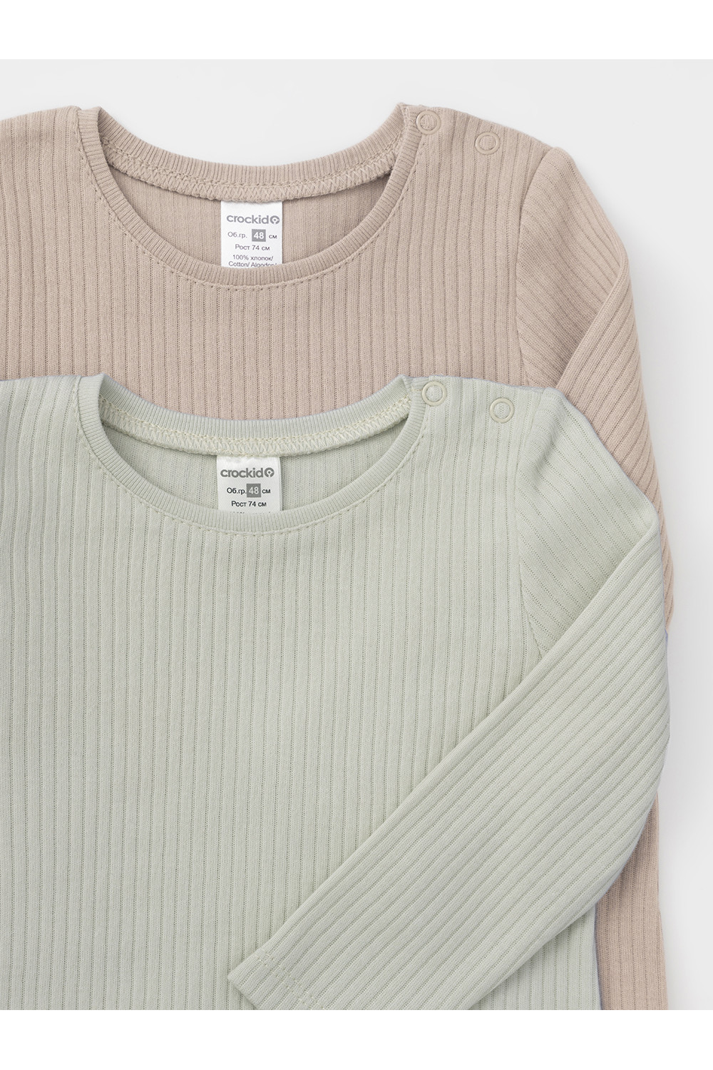 Джемперы лонгсливы для новорождённых из мягкого эластичного трикотажа, произведённого из натурального хлопка. В упаковке 2 штуки. Застёгиваются на плече на кнопки. Все трикотажные полотна производятся в соответствии с нормами швейцарского сертификата ЭкоТекс.