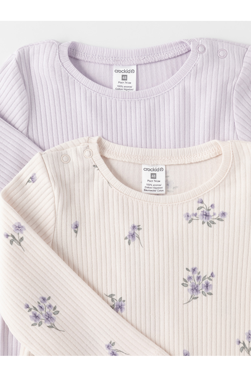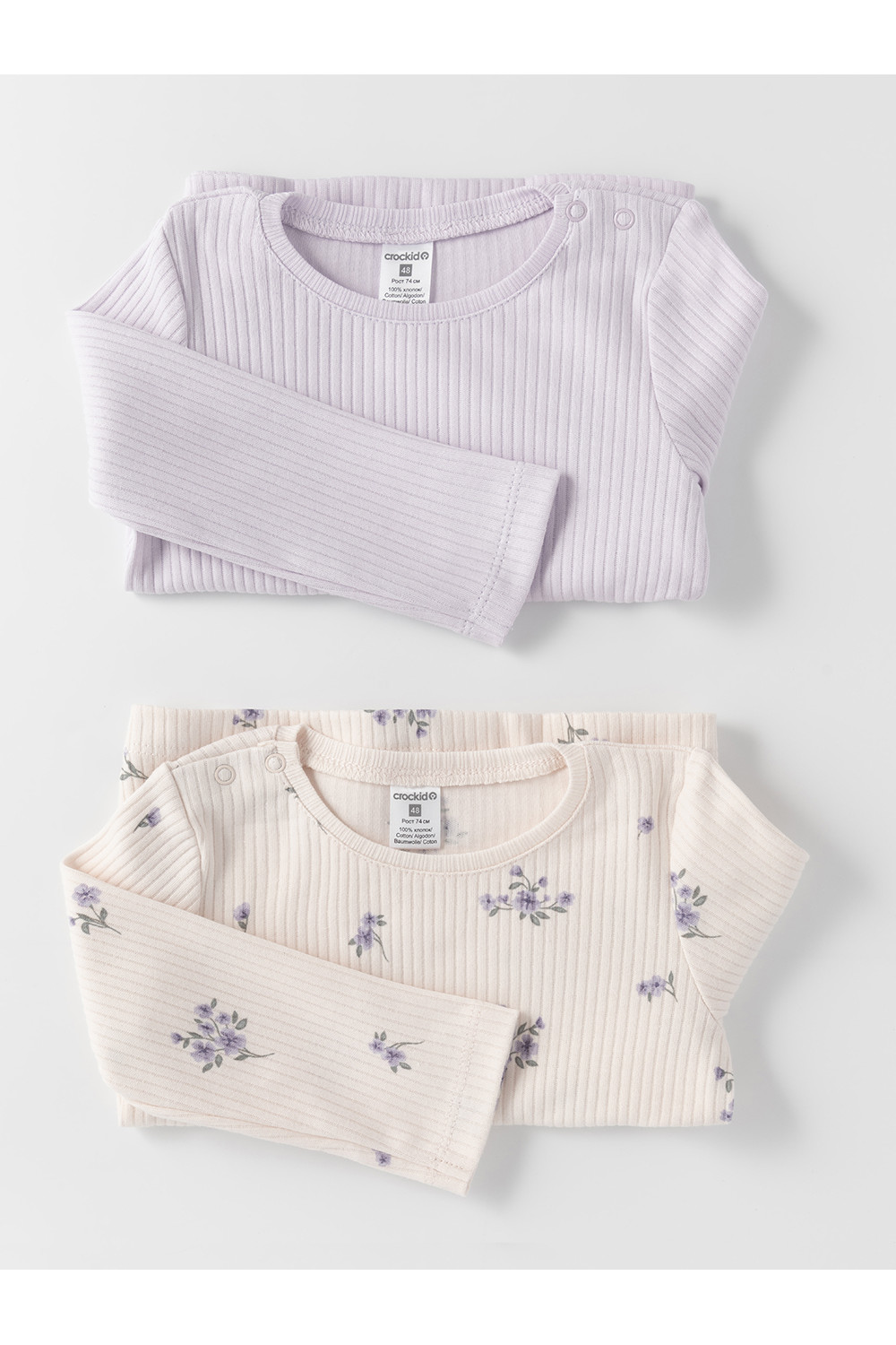 Джемперы лонгсливы для новорождённых из мягкого эластичного трикотажа, произведённого из натурального хлопка. В упаковке 2 штуки. Застёгиваются на плече на кнопки. Все трикотажные полотна производятся в соответствии с нормами швейцарского сертификата ЭкоТекс.