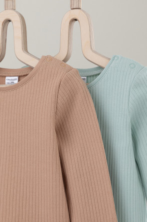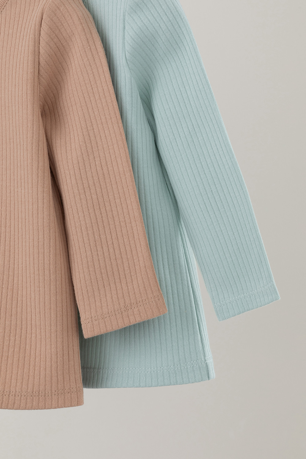 Джемперы лонгсливы для новорождённых из мягкого эластичного трикотажа, произведённого из натурального хлопка. В упаковке 2 штуки. Застёгиваются на плече на кнопки. Все трикотажные полотна производятся в соответствии с нормами Швейцарского сертификата ЭкоТекс.