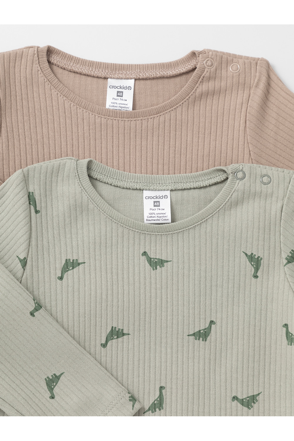 Джемперы лонгсливы для новорождённых из мягкого эластичного трикотажа, произведённого из натурального хлопка. В упаковке 2 штуки. Застёгиваются на плече на кнопки. Все трикотажные полотна производятся в соответствии с нормами швейцарского сертификата ЭкоТекс.