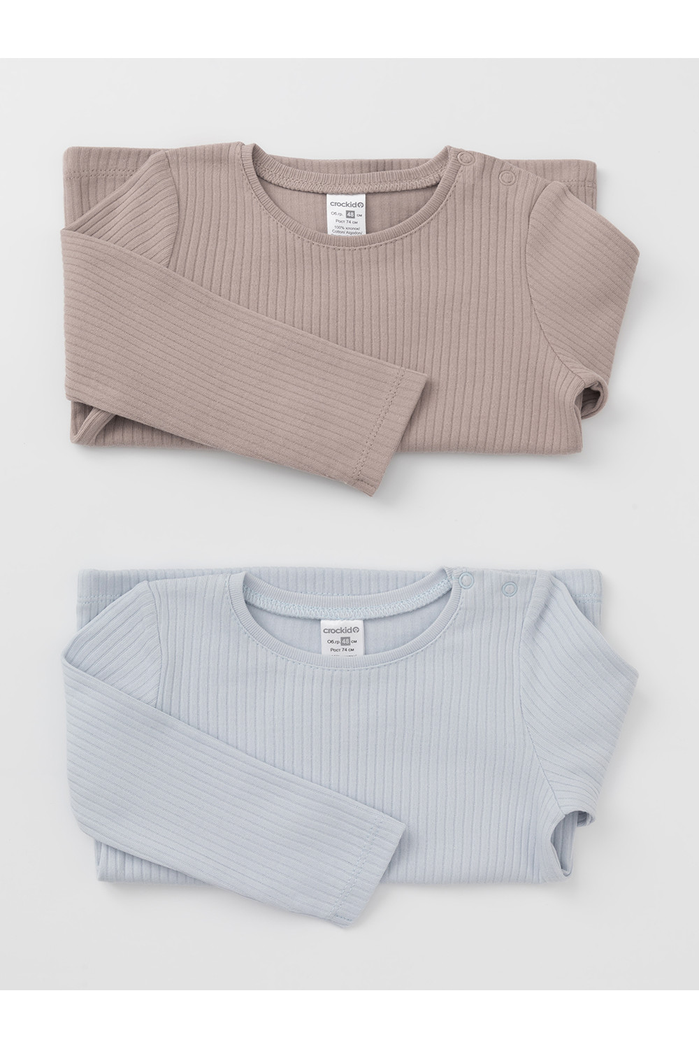 Джемперы лонгсливы для новорождённых из мягкого эластичного трикотажа, произведённого из натурального хлопка. В упаковке 2 штуки. Застёгиваются на плече на кнопки. Все трикотажные полотна производятся в соответствии с нормами швейцарского сертификата ЭкоТекс.