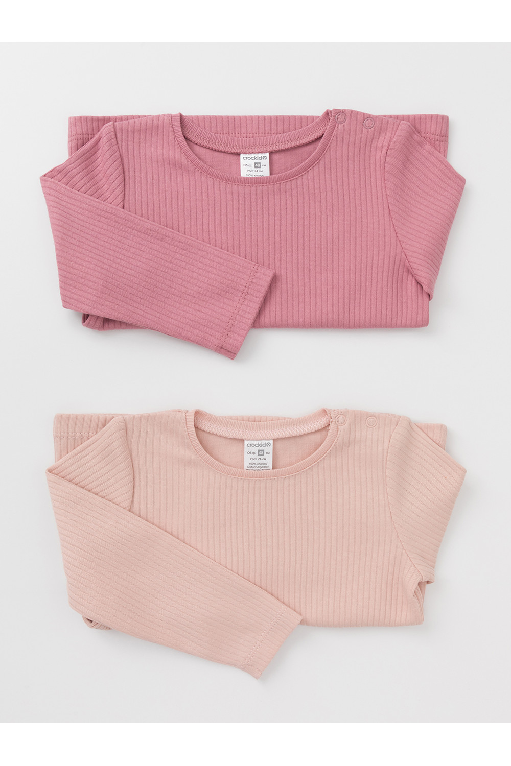 Джемперы лонгсливы для новорождённых из мягкого эластичного трикотажа, произведённого из натурального хлопка. В упаковке 2 штуки. Застёгиваются на плече на кнопки. Все трикотажные полотна производятся в соответствии с нормами швейцарского сертификата ЭкоТекс.