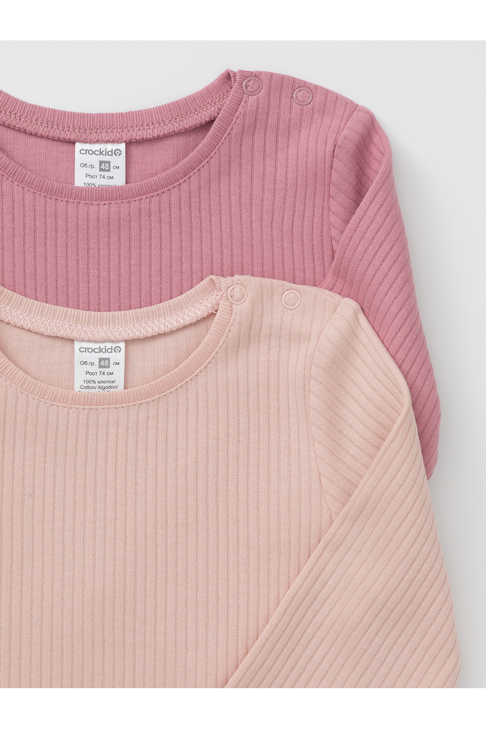 Джемперы лонгсливы для новорождённых из мягкого эластичного трикотажа, произведённого из натурального хлопка. В упаковке 2 штуки. Застёгиваются на плече на кнопки. Все трикотажные полотна производятся в соответствии с нормами швейцарского сертификата ЭкоТекс.