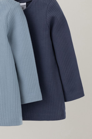 Джемперы лонгсливы для новорождённых из мягкого эластичного трикотажа, произведённого из натурального хлопка. В упаковке 2 штуки. Застёгиваются на плече на кнопки. Все трикотажные полотна производятся в соответствии с нормами Швейцарского сертификата ЭкоТекс.